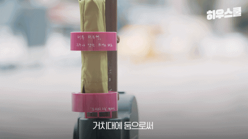 방법은 간단합니다. 준비한 거치대에 "너무 더우면 누구나 양산을 써도 돼요"와 같이 전하고 싶은 문구를 적고