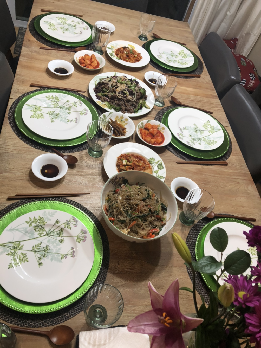 친정 식구들과 모일 때는 잡채 등 몇 가지의 한국음식도 같이 준비하곤 하는데 요번엔 한국음식은 금요일 저녁 식사로 준비했지요.
