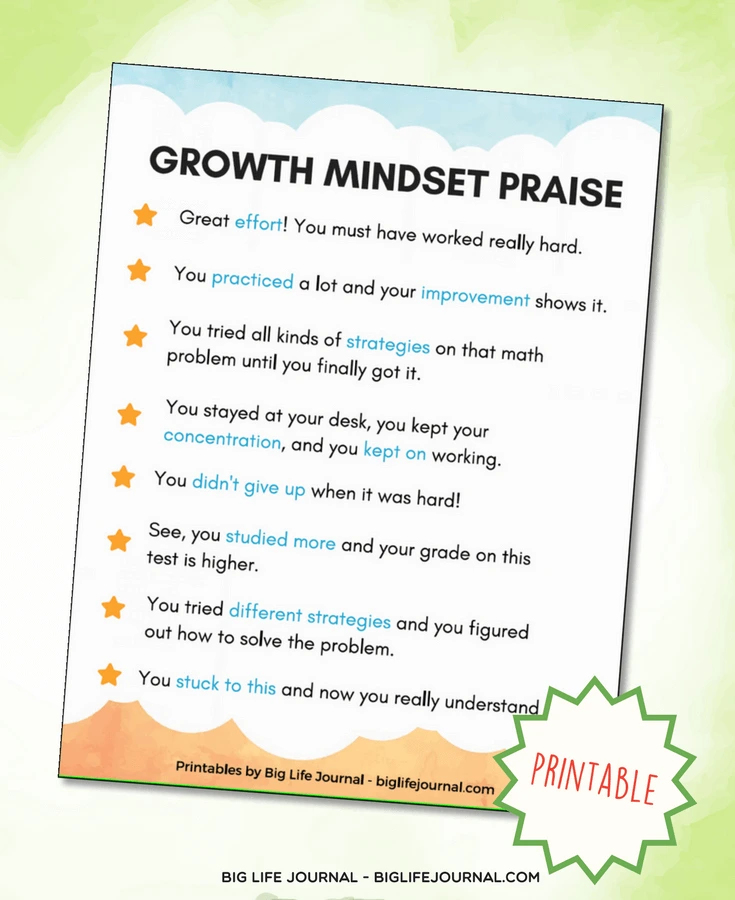 이 책을 읽은 후 많은 교육자들이 학생들을 대할 때, 특히 공부에 자신 없어하는 학생들에게 어떻게 하면 포기하지 않고 노력할 수 있도록 “Growth (성장) Mindset”을 심어 줄 수 있을까 고민도 하고 대화 속에서도 많은 노력을 합니다. 개인적으로는 엄마로서 아무렇지 않게 했던 칭찬들이 아이들에게 “fixed mindset”을 심어 주었구나 생각하니 참 후회스럽기도 했지요. 예를 들어 자녀가 좋은 성적을 집에 가져왔을 때 제가 무심코 던진 “ 정말 잘했구나! 넌 정말 똑똑 하구나!”라고 했던 말이 아이를 “fixed mindet”으로 만들 수 있다고 합니다. 운동에서도 마찬가지입니다. 아이가 좋은 경기를 한 후 코치나 부모가 “넌 정말 운동신경이 뛰어나구나. 타고난 운동선수야!” 하고 말하는 것 또 한 아이를 “fixed mindset”으로 만들 수 있다고 합니다. 아이의 “Growth mindset”을 키워 주는데 도움을 줄 수 있는 “칭찬 (praise)” 을 아래에 영문으로 소개합니다. “노력 (effort)” 을 칭찬하는 것이 굉장히 중요하다고 합니다.
