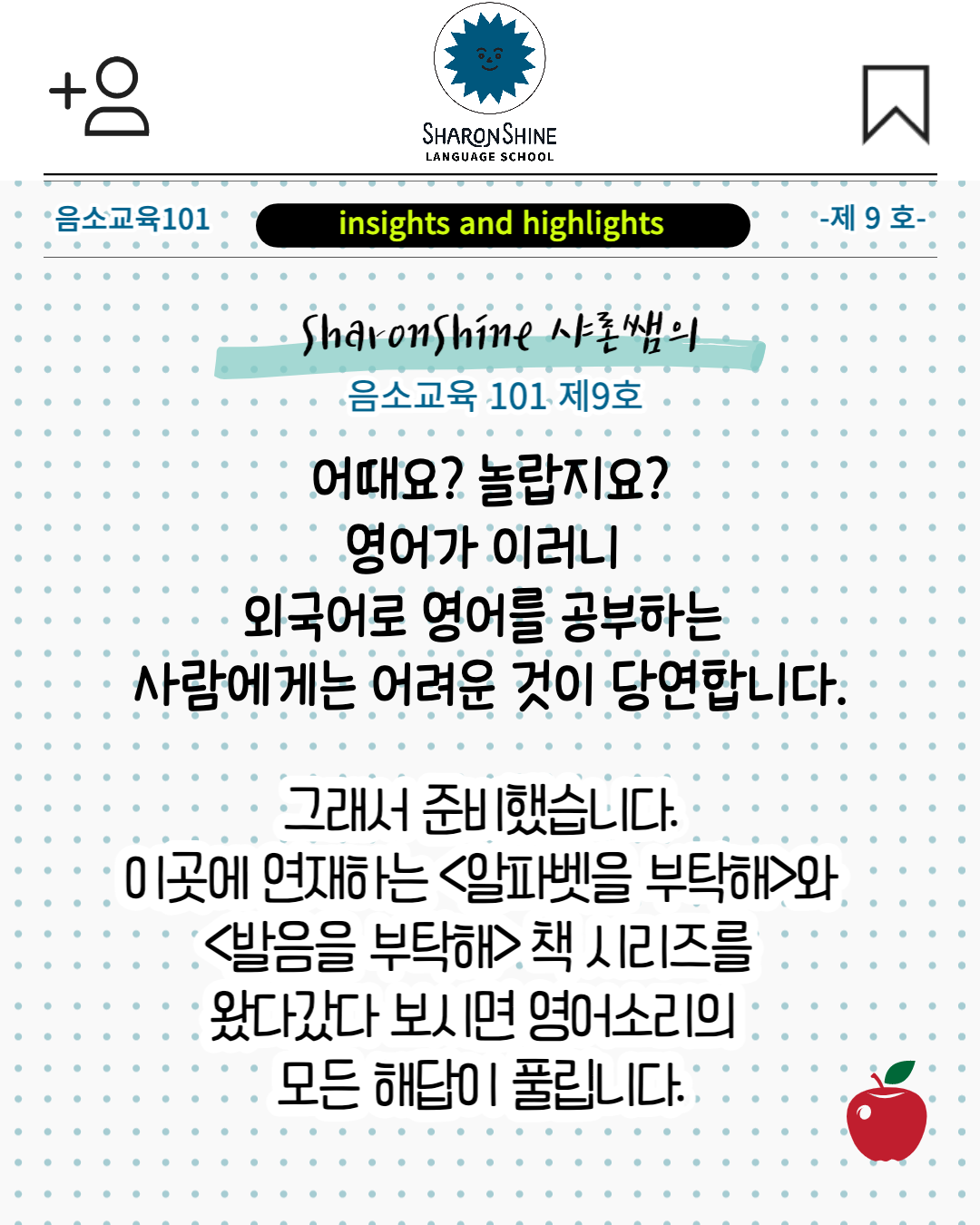 강 샤론의 브런치입니다. <발음을 부탁해> 저자이자 SharonShine English의 대표입니다. <영문학을 읽어요> 원서정독의 힘 출간준비중