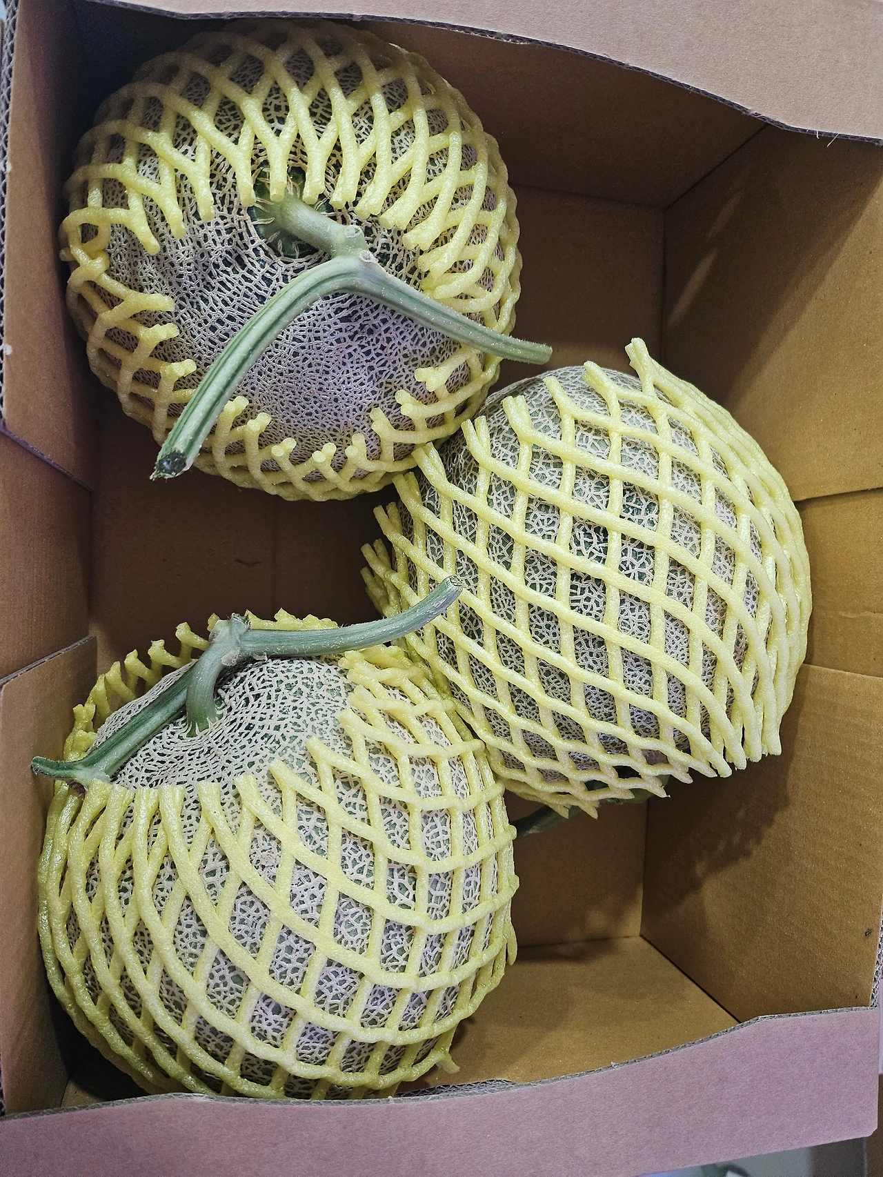 박스를 열어보니 멜론이 3개 들어 있었다.