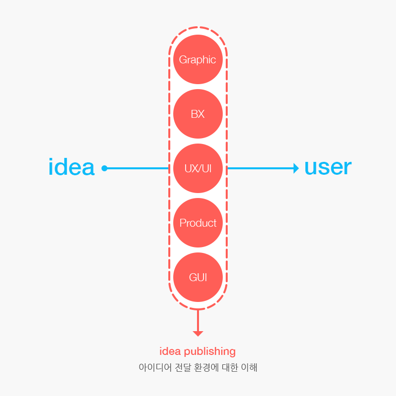 아이디어는 그 환경에 맞게 퍼블리싱되어 사용자에게 전달된다. 퍼블리싱은 아이디어를 전달하는 환경에 대한 이해이다. 그 환경은 크게 온라인 환경과 오프라인 환경으로 나뉜다. 그에 따라 환경에 대한 이해가 필요할 뿐, 디자인의 의미는 예전이나 지금이나 아이디어를 전달하는 것에 그 의미가 있다. 디자인은 아이디어의 전달이고, 디자이너는 아이디어를 전달하는 사람이다.