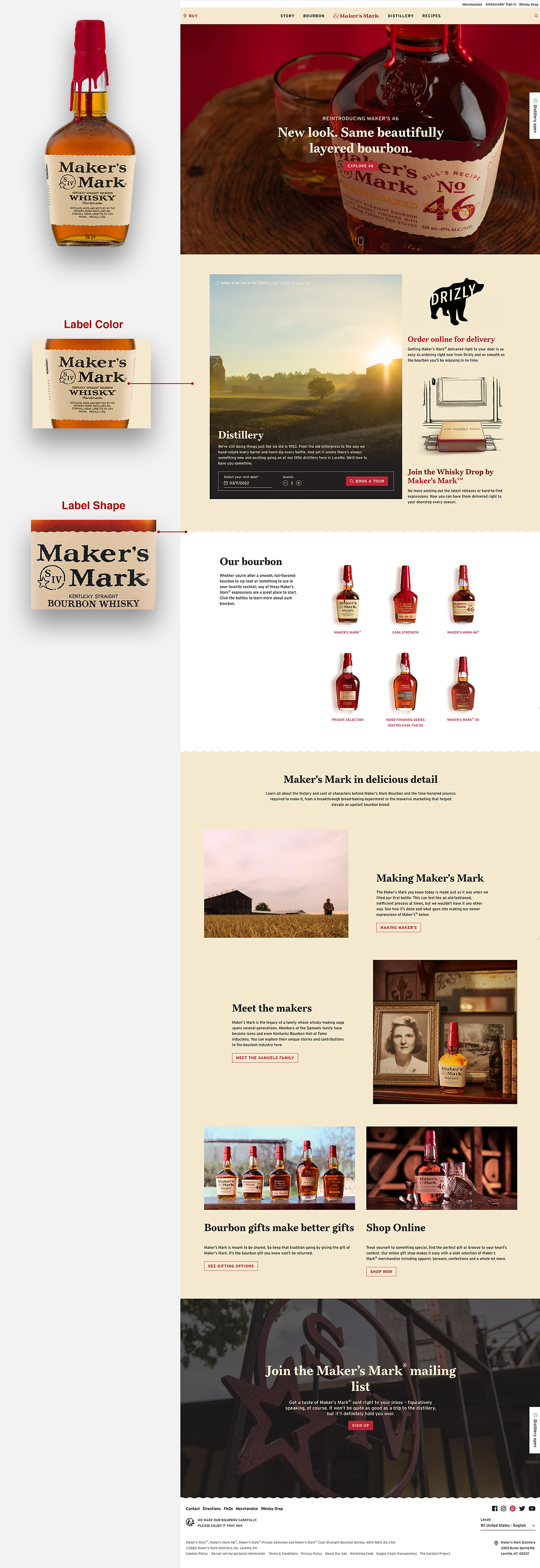 메이커스 마크의 시그니처 붉은 밀봉 쉐입으로 아이덴티티를 강조했고, 창을 열고 시간이 흐르면 위스키 이모지와 함께 잊지 말라는 메시지로 바뀐다. 실무에서 브랜드 웹 사이트 디자인을 할 때 제일 먼저 확인하는 게 브랜드 가이드이고 또 제품의 이미지다. 실제 제품의 특징에서 활용할 수 있는 시각 요소들을 캐치하는 것이 중요한데 메이커스 마크의 웹 사이트는 제품의 이미지를 어느 정도 잘 녹여냈다고 생각한다.