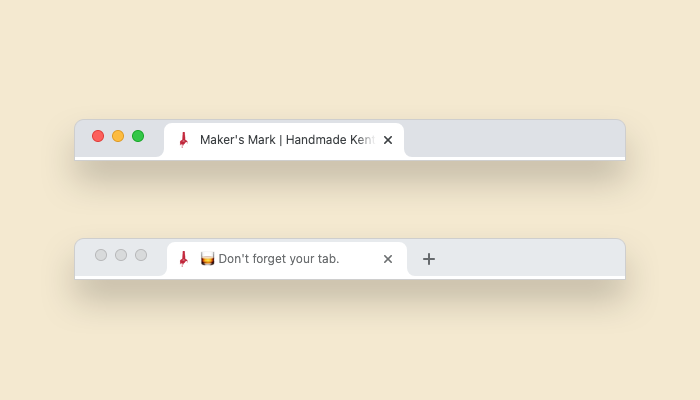 위 영상에 나오는 직원이 30년 동안 혼자서 하루에 라벨 6만 4,000장씩을 잘라냈다고 하니 메이커스 마크의 모든 직원들이 장인인 셈이다. 그럼 온라인 쪽은 어떨까? 웹 사이트를 방문해봤다. 제일 먼저 눈에 들어오는 건 센스 있는 웹브라우저의 파비콘이다.