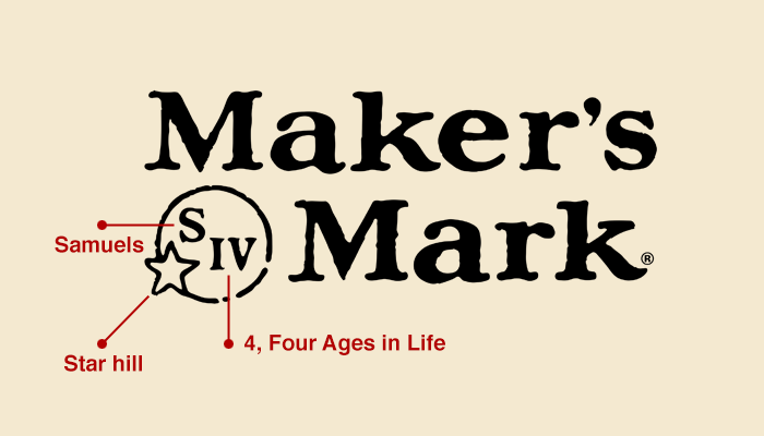 메이커스 마크의 로고는 새무얼스 가문의 S와 증류소가 있는 스타 힐 농장을 의미하는 별 그리고 증류소를 4대째 운영하고 있는 장인이라는 의미가 들어 있다. 그리고 앞에서 말한 붉은 왁스로 밀봉하는 방식은 일일이 사람이 손으로 작업한다. 붉은 왁스에 병 입구를 담그고 꺼내 놓는 방식인데, 그렇게 되면 왁스가 흘려내리는 모양이 모두 다르다.
