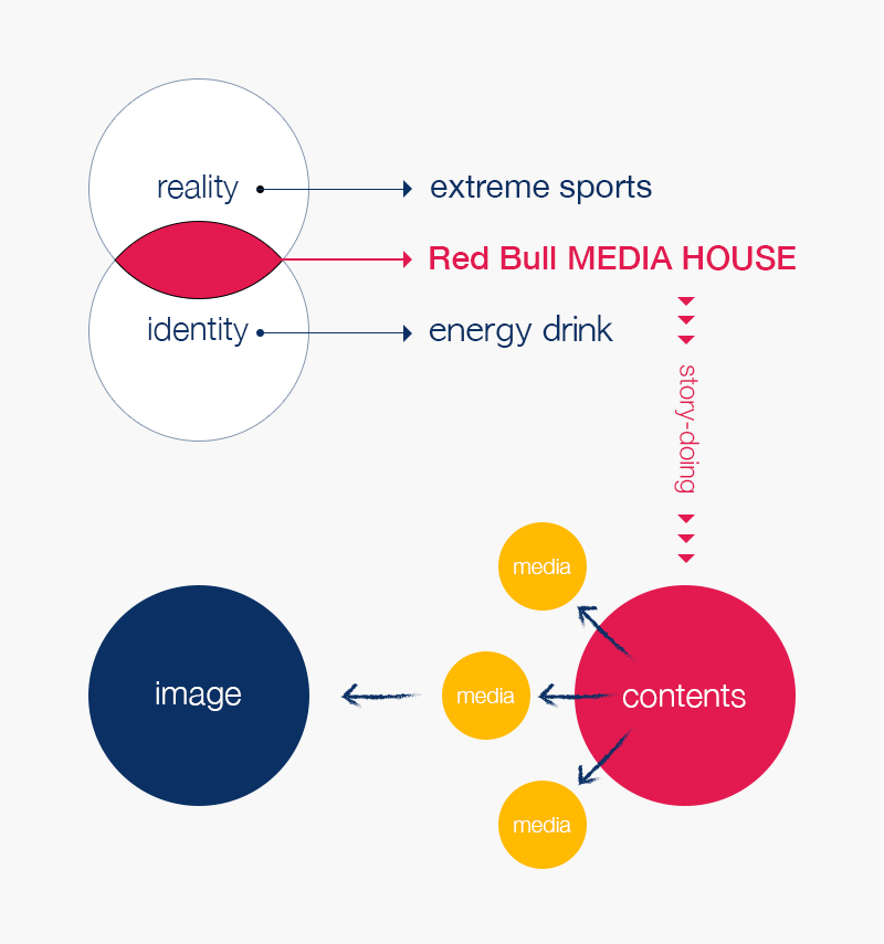 그렇다면 아이덴티티를 어떻게 실현(리얼리티)해야 사람들 인식 속에 이미지가 각인이 될까? 또, 그 과정에서 브랜드가 성장할 수 있는 가능성은 어떤 것이 있을까? 레드불의 사례를 통해 아이덴티티가 어떻게 실현되고, 그 과정에서 브랜드가 미디어로 어떻게 성장하는지 알아보도록 하자.