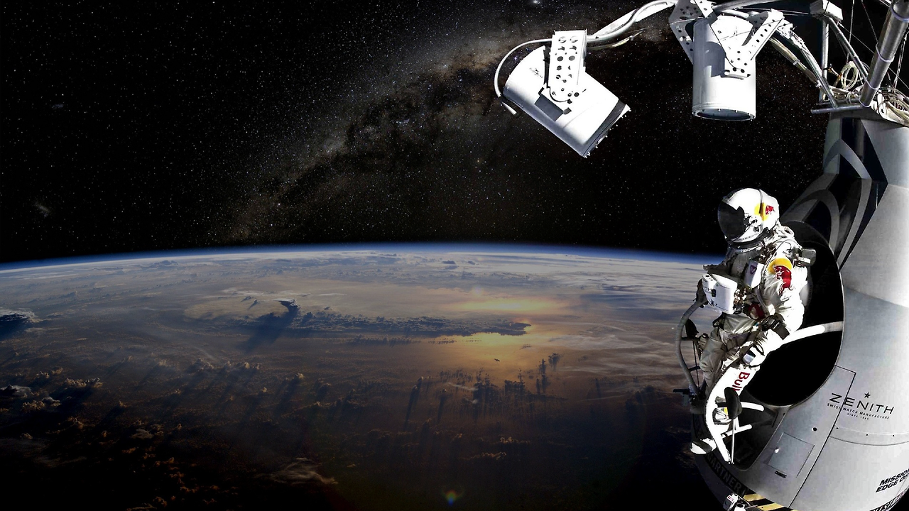 '바움가르트너'의 약 38km 상공에서 자유낙하.