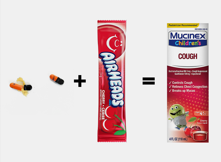 나의 조카는 이제 7살이다. 어렸을 때 감기에 걸려 약을 먹어야 할 때면 여간 곤혹스러운 게 아니다. 약 봉지만 봐도 그것이 약인걸 알아차리기 때문에 약봉지를 든 순간 도망가기 바쁘다. 하지만 이런 약봉지를 아이들이 좋아하는 과자의 포장과 유사하게 디자인하면 어떨까? 약과 과자의 상징이 충돌하게 된다. 겉모습은 과자지만, 그 효과는 감기를 낫게 하는 약이기 때문이다.