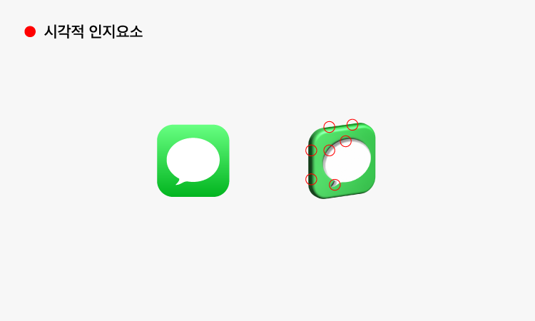 말풍선 개체에 하단과 동일하게 적용하면 된다. (주의사항 3D 효과를 적용하기 전에 두 개체를 그룹으로 설정하지 않기) 3D 효과는 초록색의 아이콘 컨테이너 개체 그리고 말풍선 개체 총 두 개체다.
