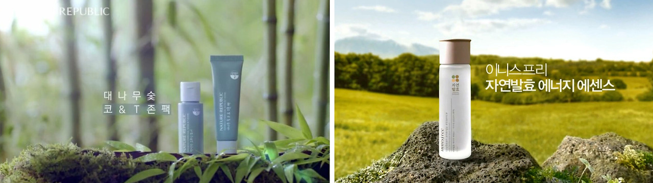 수많은 자연주의 화장품 브랜드 중 이니스프리는 자연주의 가치를 제주로 커뮤니케이션했다. 제주의 연상 이미지는 육지와 떨어진 청정 지역이다. 그렇게 이니스프리는 시장에서 독립적인 자연주의 이미지를 구축했다. 실제로 이니스프리의 재료는 제주에서 생산된다.