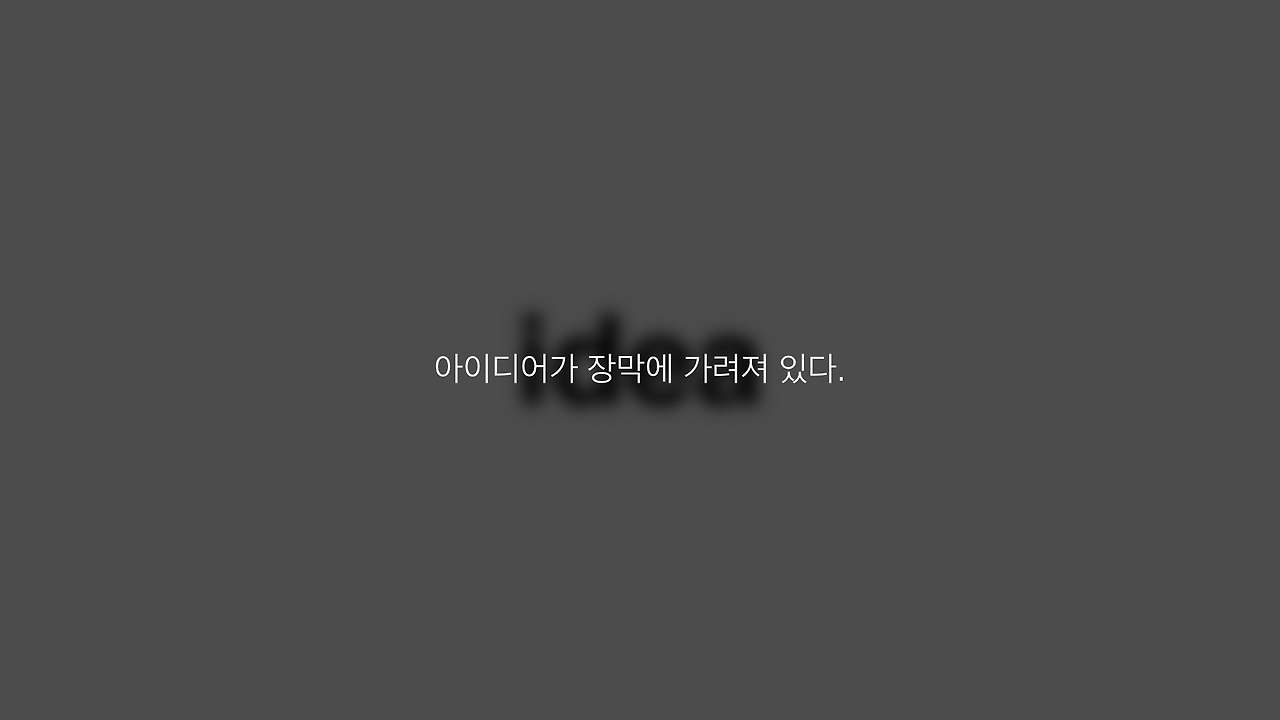 나는 전자의 경우를 당신의 생각이 장막에 가려져 있다고 얘기한다. 후자의 경우는 장막을 걷어내는데 한 단계 성공했다고 말한다. 장막에 가려진 생각은 확장되기가 어렵다. 그 이유는 자신의 머릿속에만 존재하기 때문이다. 자신의 머릿속에서 끄집어내기 위해서는 장막을 걷어내야 한다. 그렇지 않으면 당신의 생각은 계속 당신의 머릿속에만 존재할 것이다.
