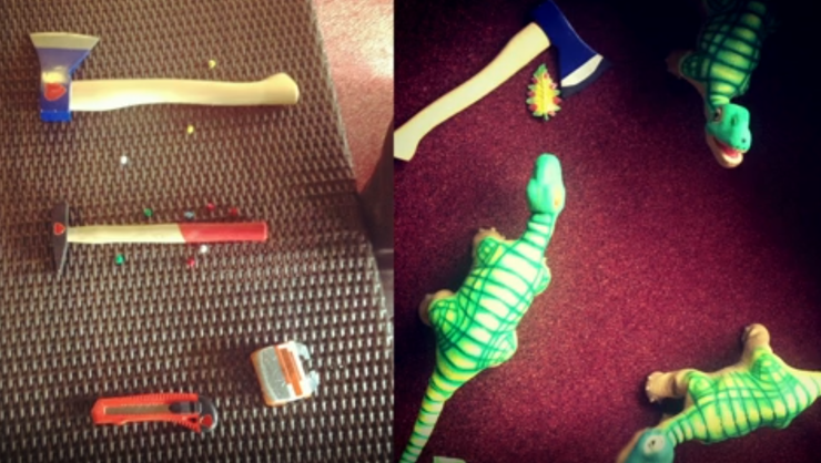 다음 사례를 한번 볼까요. 연구자는 피실험대상들을 모은 후 5개의 그룹을 만들어 한가지 실험을 합니다. 각 그룹에 하나의 공룡로봇을 주고 한 시간 동안 함께 놀도록 하죠.