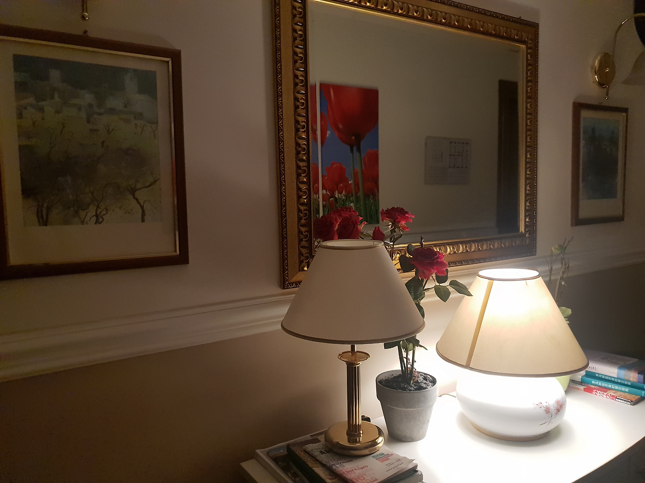 배정받은 방으로 들어와 안을 둘러보았다. 방안에 들어서니 고풍스런 인테리어와 가구들이 보인다. 작년에 묵었던 그 방은 아니지만 그 분위기와 느낌은 비슷했다. 침대는 비교적 무난해 보였지만 커다란 옷장은 주말에 서울 풍물시장에서나 찾아볼 만한 정도였다. 많이 낡고 허름했다. 풍물시장 귀퉁이에서 세치 혀로 흥정만 잘하면 판매자가 '그래 내가 졌다',라고 선언하며 몇 만원에 얻어올 수도 있을 것 같은 외관이었다. 그래도 은은하고 따뜻한 조명이 있어 방안이 편안하게 느껴졌다. 마치 주말에 시골 할머니댁을 방문했는데 할머니께서 예술에 조예가 깊으셔서 분위기 있게 집을 꾸며놓으면 이런 느낌이지 않을까 싶다. 올드하지만 나름 편안하다.