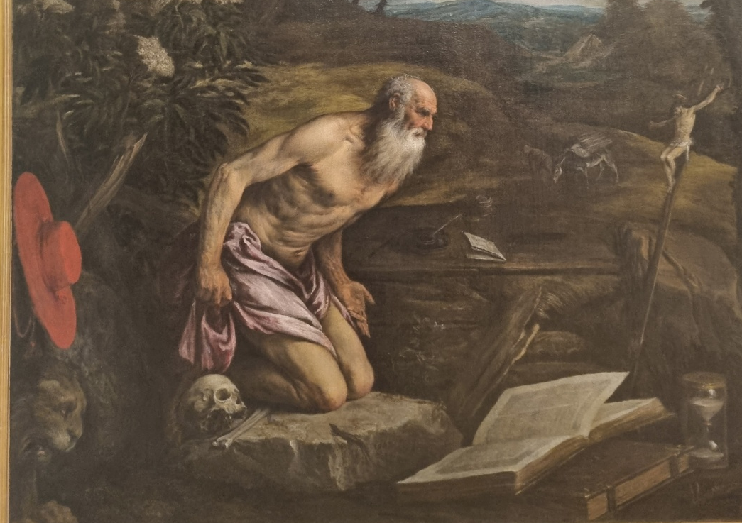 성 히에로니무스를 그린 작품을 이탈리아 미술관에서 자주 볼 수 있습니다. 히에로니무스 성인은 히브리어로 된 성경을 라틴어로 번역한 인물로 전해집니다. 광야를 떠돌다 가시 박힌 사자를 만나 가시를 뽑아주자 그를 따라다녔다는 일화가 전해져 그를 그린 그림에는 사자가 함께 나오곤 합니다.