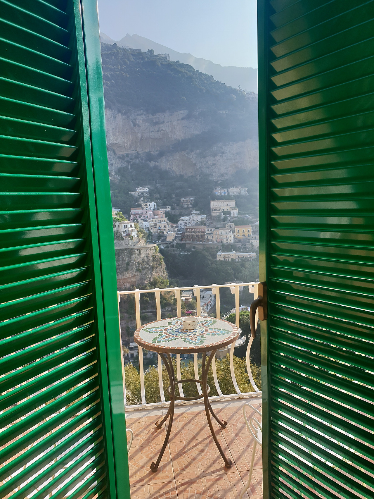 드디어 끝없이 이어지던 계단을 올라 숙소에 도착했습니다. 다행히 캐리어는 포터서비스를 통해 잘 도착해 있습니다. 이제 마음이 놓입니다. 숙소를 배정받고 방문을 여니 조그마한 테라스가 있습니다. 테라스에 나오니 포지타노의 또다른 모습이 보입니다.