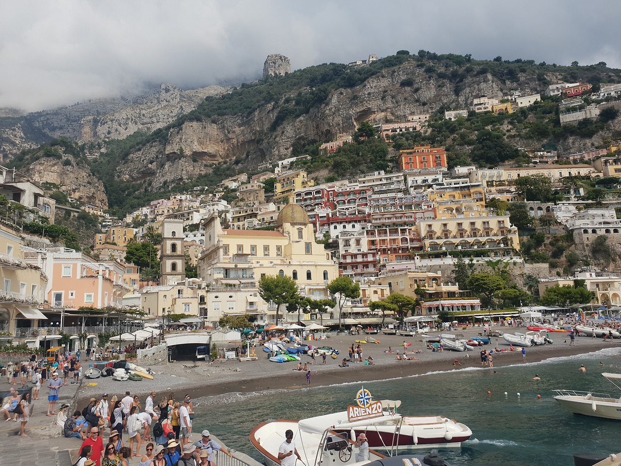 이탈리아 아말피 코스트 중 가장 많은 여행객이 들르는 곳이 이곳 포지타노일 것입니다. 그다지 크지 않은 해안가에 북적북적 모여있는 사람들을 보고 있으니 지금이 9월 하순인지 한여름인지 헷갈립니다.