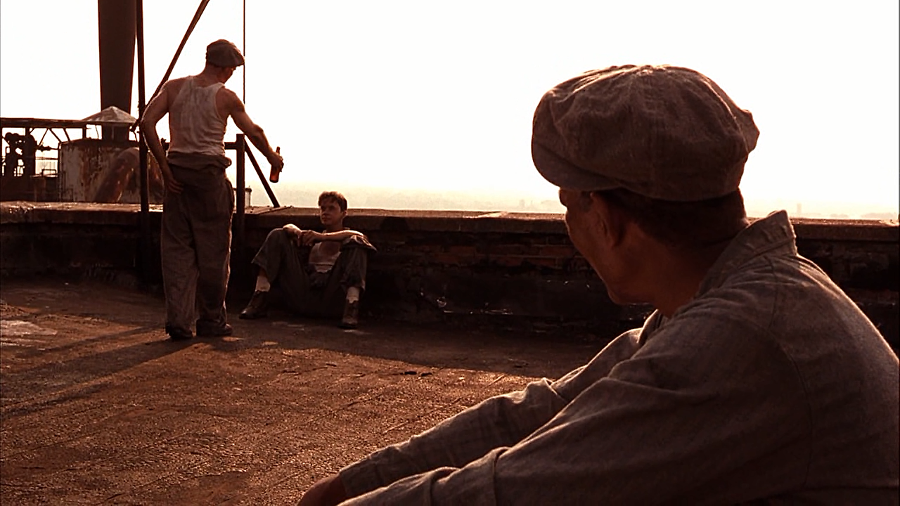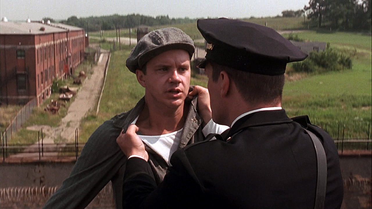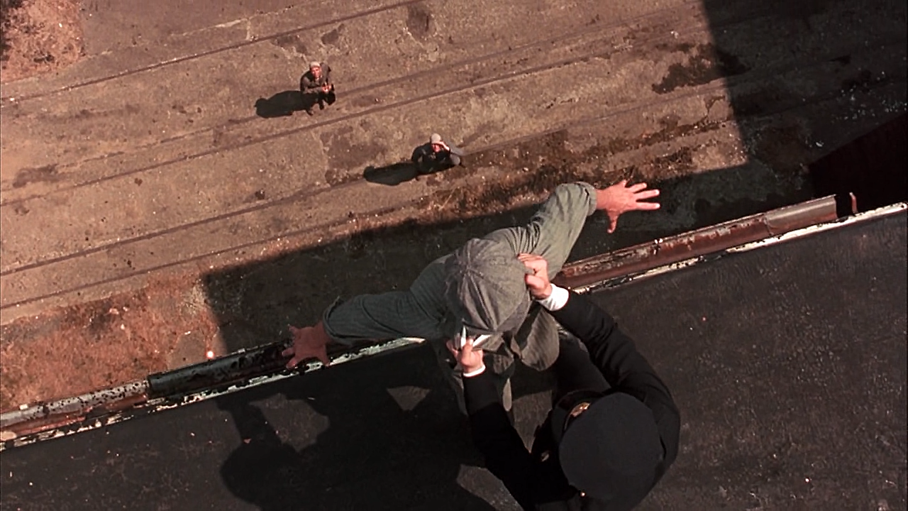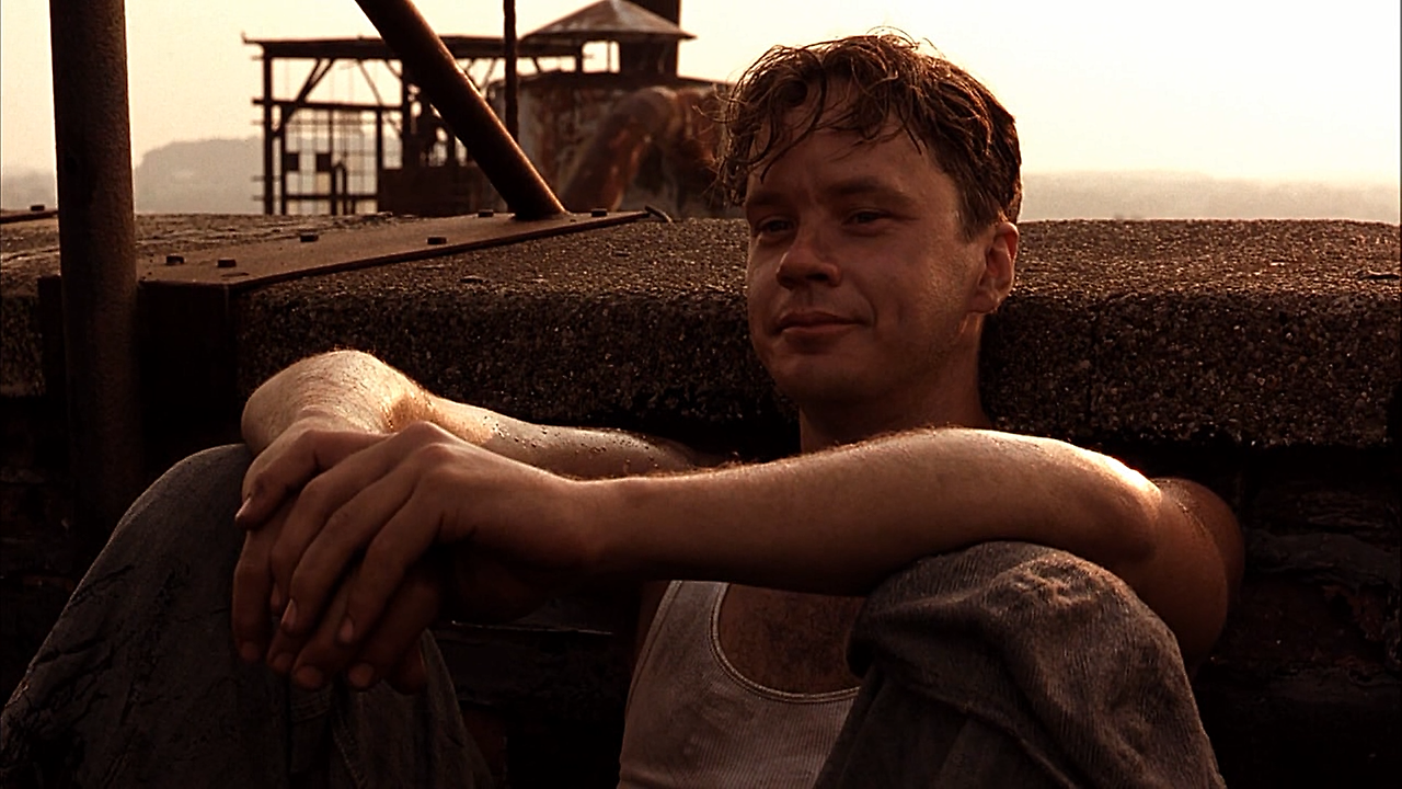 영화에는 다시 봐도 질리지 않는 인상 깊은 장면들이 많이 나옵니다. 그중 하나가 죄수들이 지붕 보수작업을 하는 장면입니다.