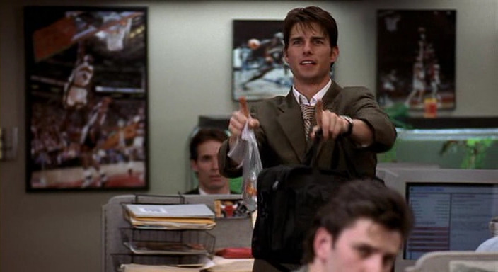 영화는 잘나가는 스포츠 에이전트였던 제리가 어떻게 각성을 하고 변화된 가치관으로 일하게 되는지 때로는 유머러스하게, 때로는 감동적으로 그려냅니다. 직업적인 면에서의 표면적 성취보다는 일을 대하는 가치관과 사람을 대하는 태도에 대해 이야기합니다.