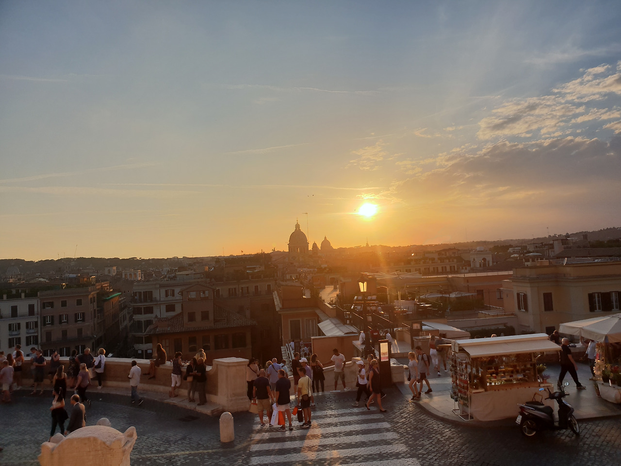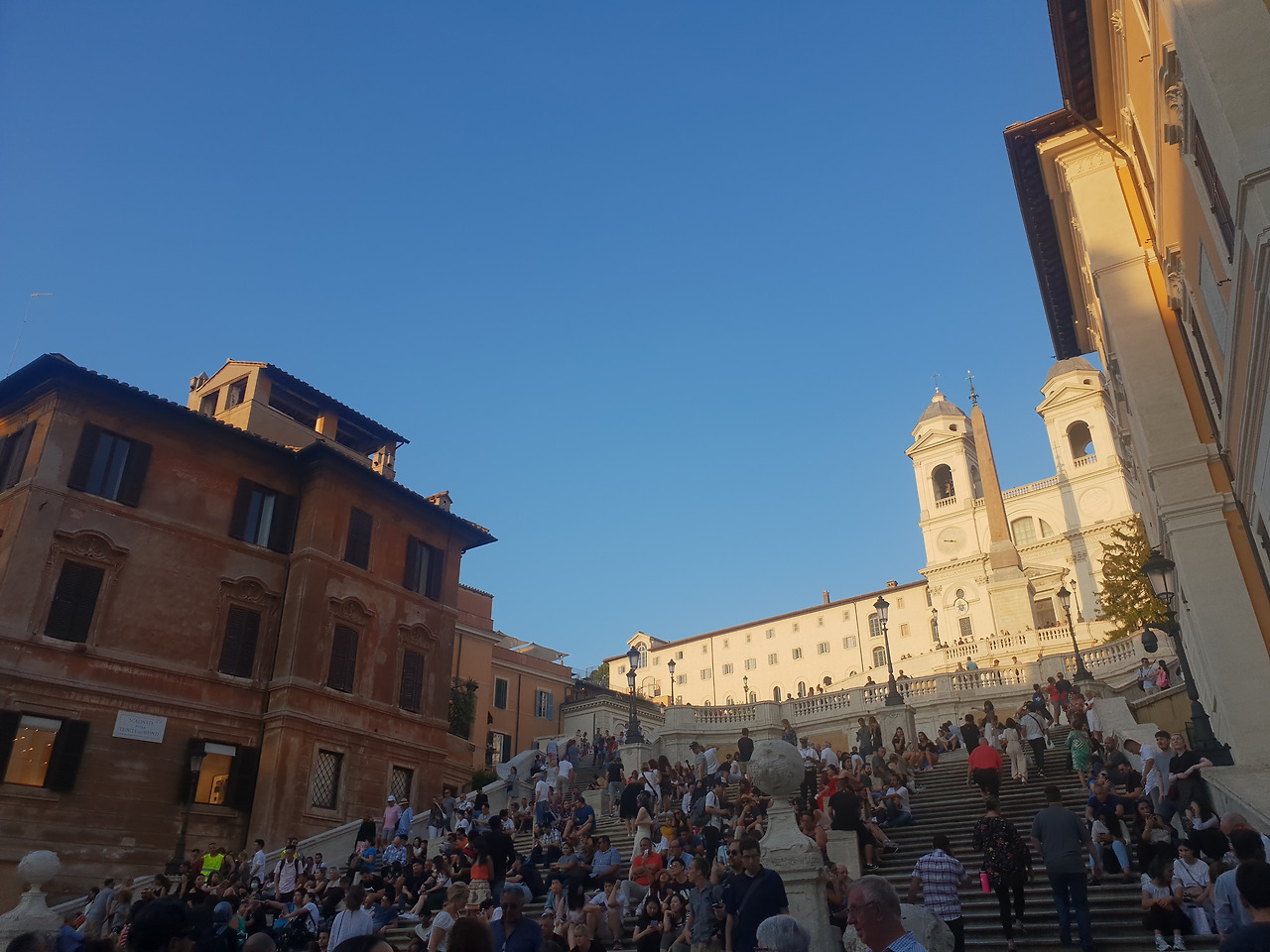높은 언덕이나 산이 없는 로마 시내에서는 일몰을 보기 위해 이 곳 스페인광장으로 관광객들이 모이곤 합니다. 옹기종기 모여 로마의 일몰을 감상할 준비를 합니다.