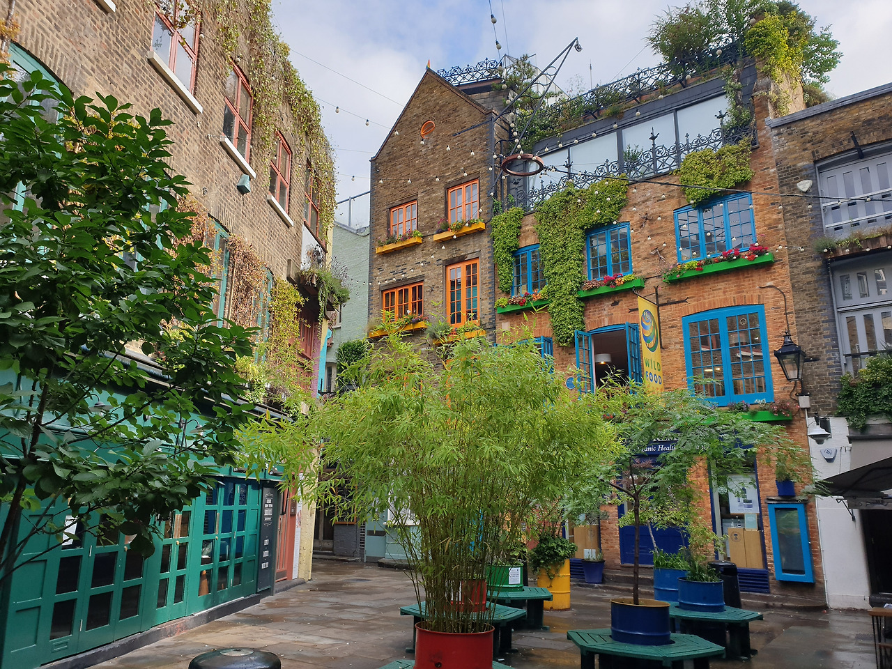 시내를 걷다 작은 골목길을 걸어 들어가면 닐스야드라는 자그마한 공간이 나타납니다.