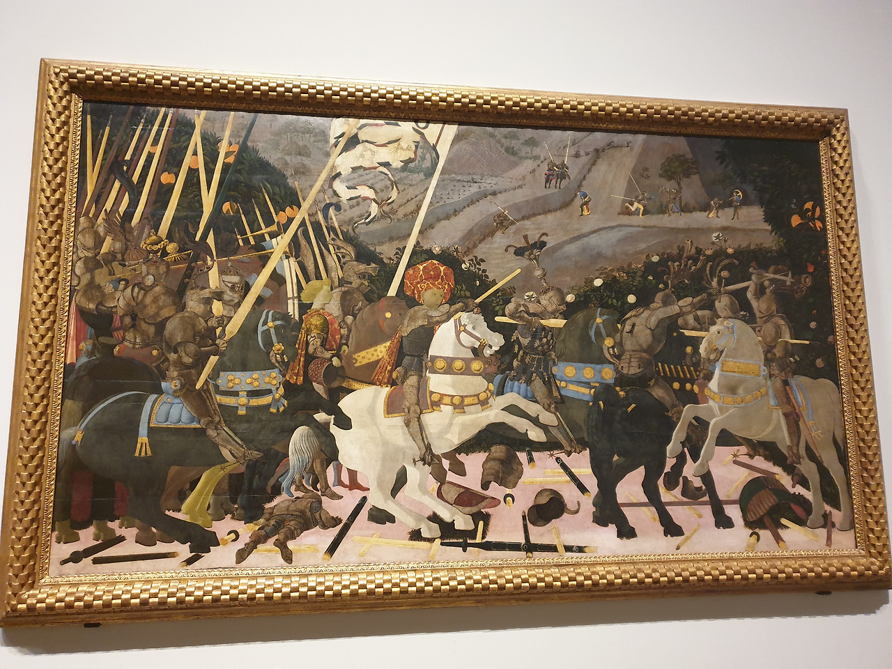 다음은 우첼로의 <산 로마노의 전투>라는 작품입니다. 르네상스 시대 이탈리아의 경쟁국가였던 시에나와 피렌체 간의 전투 풍광을 묘사한 그림입니다.
