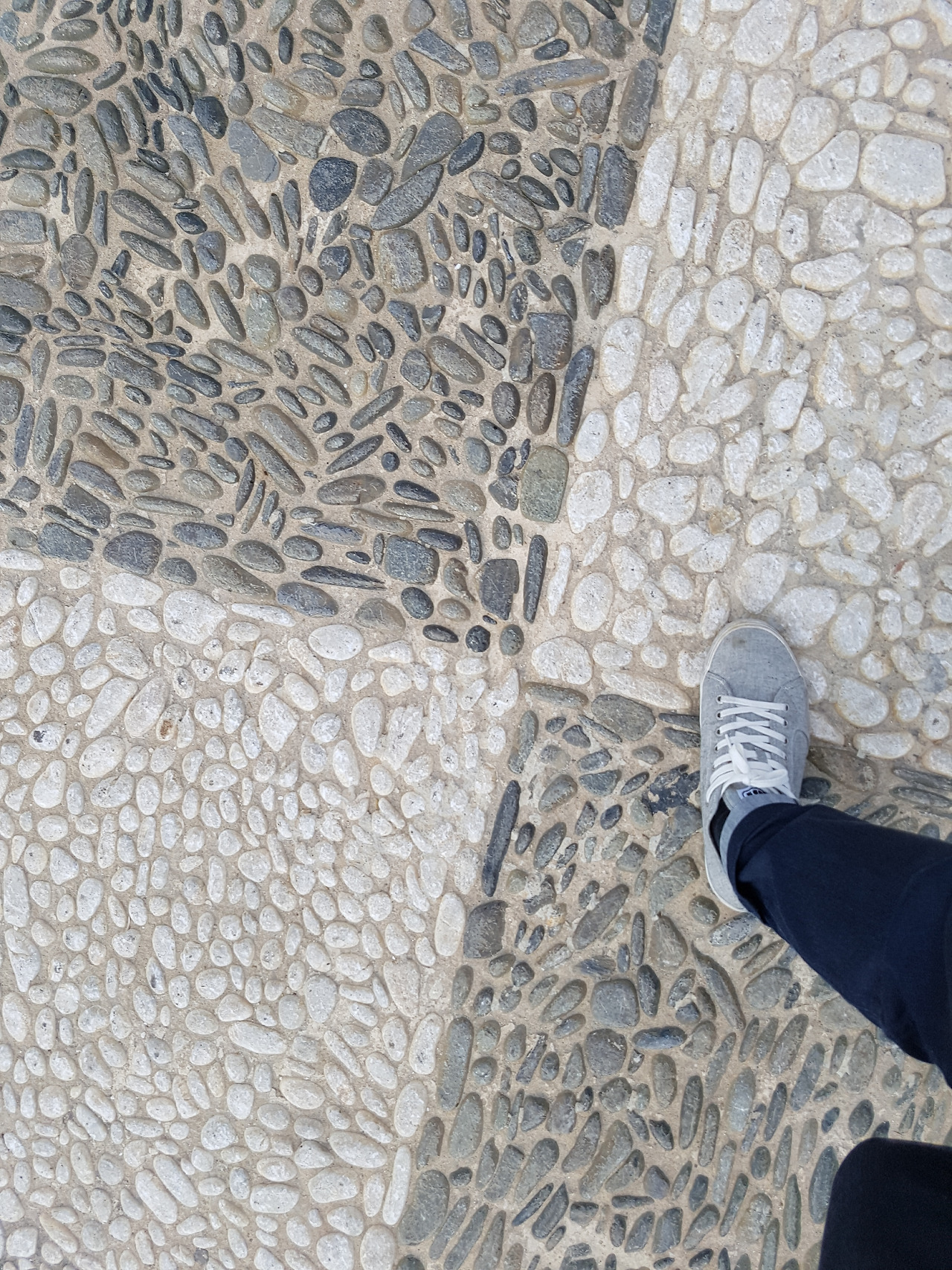 스페인 광장의 바닥에는 작은 돌멩이들이 빼곡히 깔려 있습니다. 밑창이 얇은 신발로 걸어 다니면 지압 효과가 느껴질지도 모릅니다.