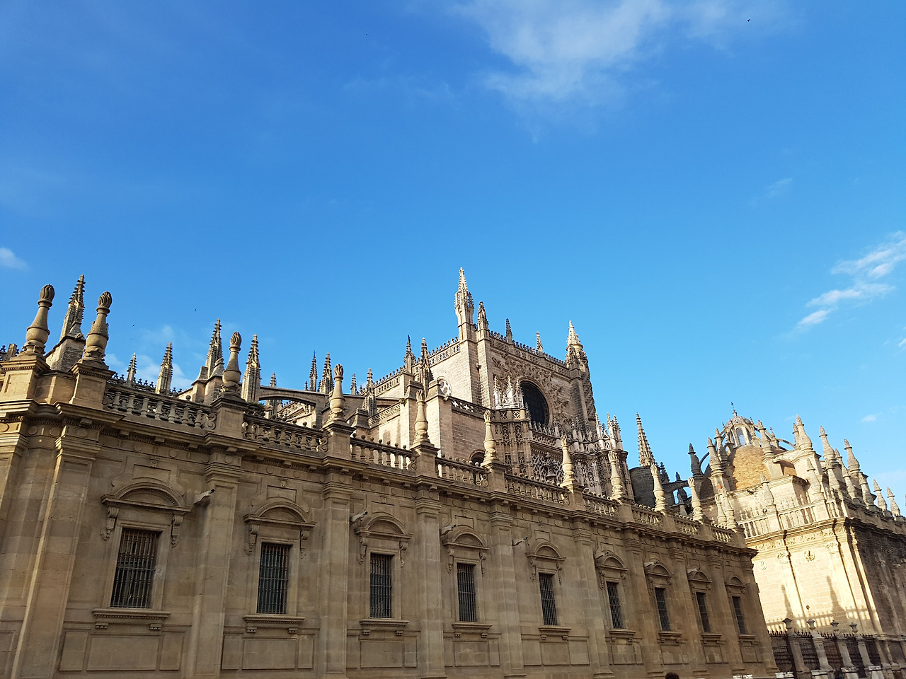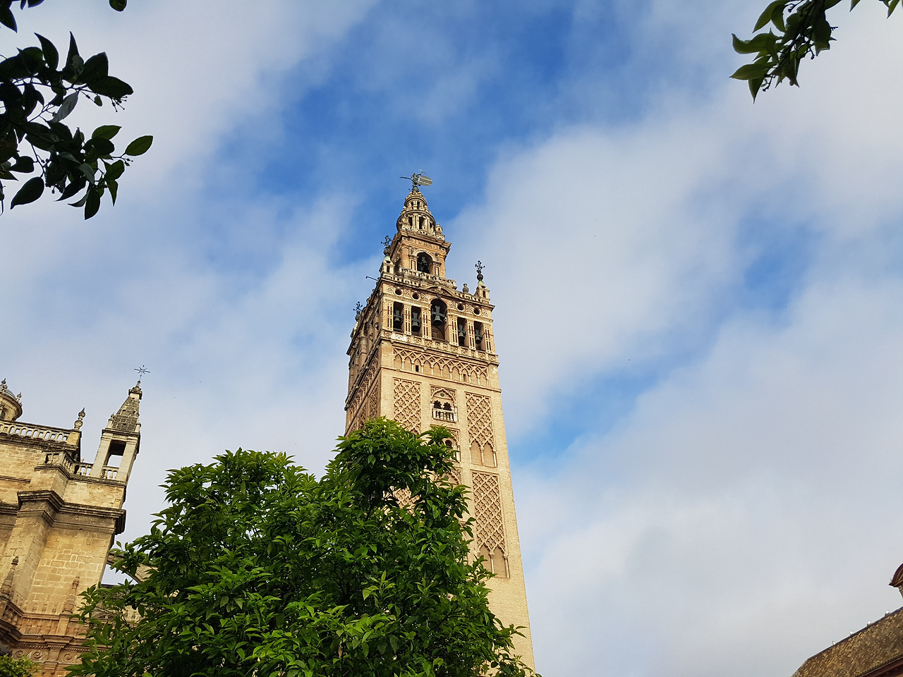 가톨릭을 위한 세비야 대성당이 웅장하게 자리한 가운데, 옆에는 이슬람 양식으로 지어진 히랄다탑이 우뚝 솟아 있습니다.