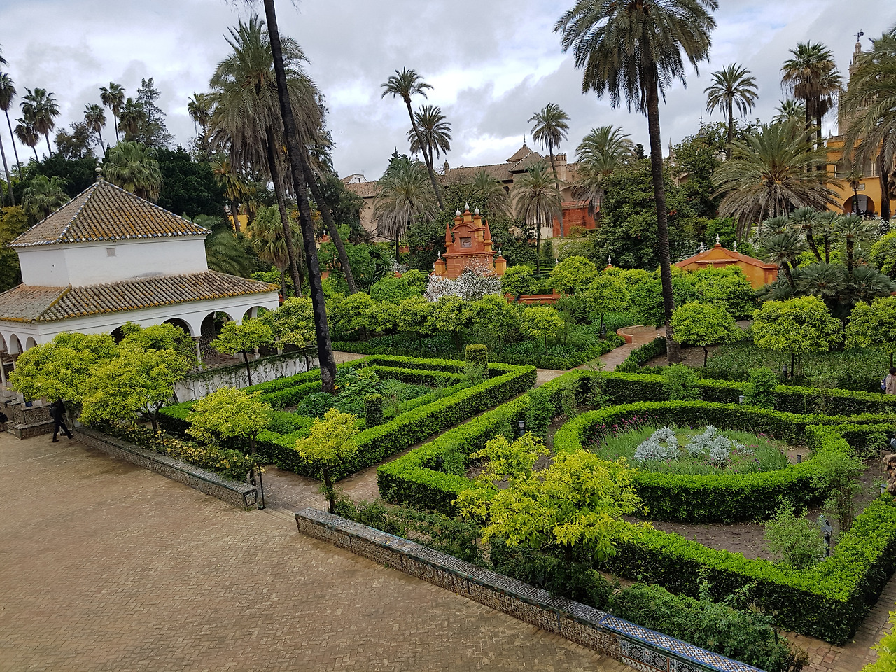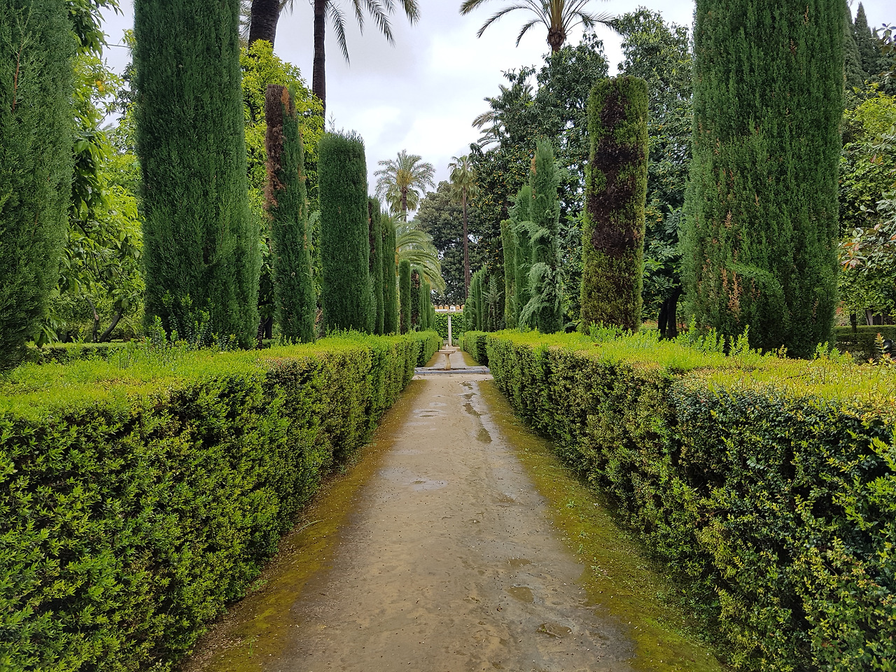 얕은 비가 온 후 방문한 알카사르에는 쾌청함이 남아 있습니다. 비를 살짝 맞은 장미가 더 또렷한 색상을 뽐냅니다.