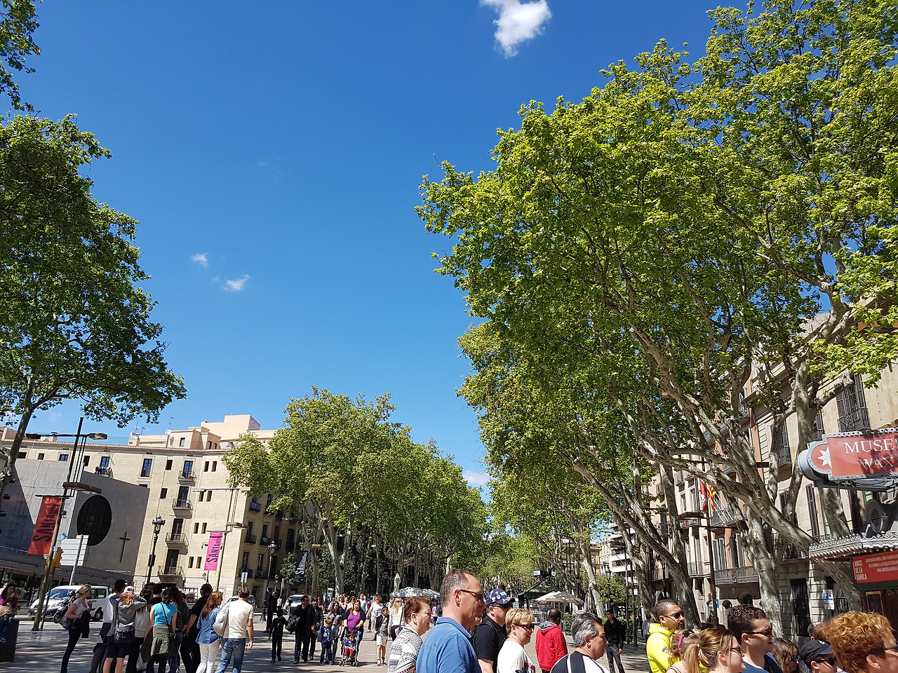 람블라 거리바르셀로나는 세비야에서 보다 더 맑고 따사로운 하늘로 반겨줍니다.