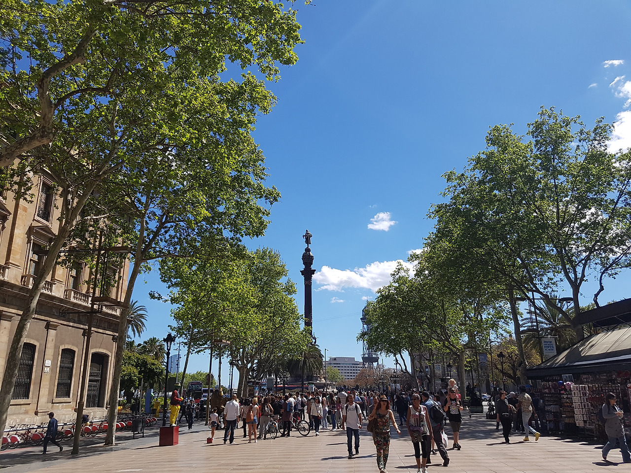 바르셀로나에서 가장 유명한 거리는 고딕지구를 옆에 두고 항구까지 시원하게 뻗어 있는 람블라 거리입니다.