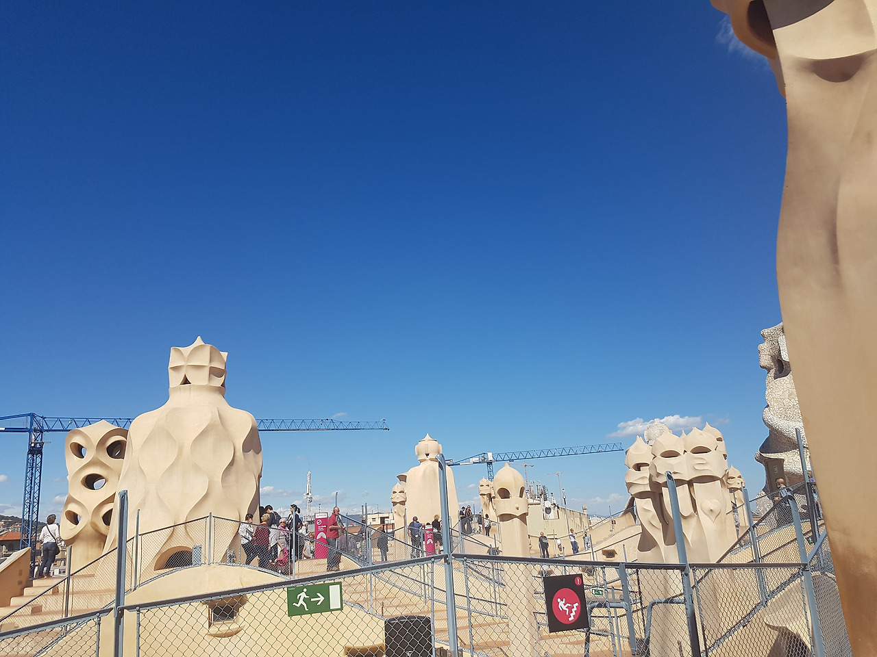 까사밀라 옥상에 올라 건물을 둘러봅니다. 건물 외벽뿐만 아니라 옥상 곳곳에도 가우디의 독창적인 손길이 닿아 있습니다.