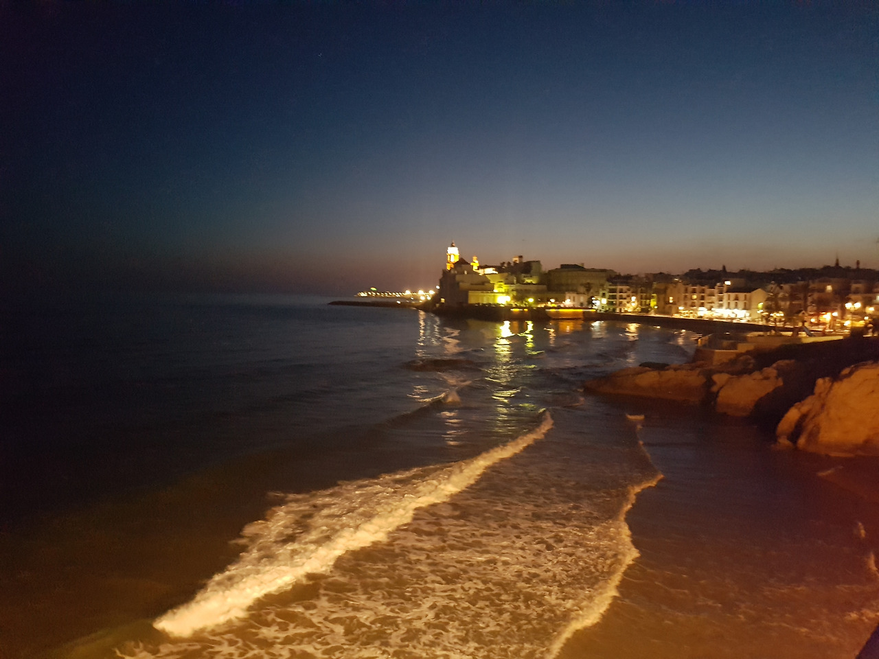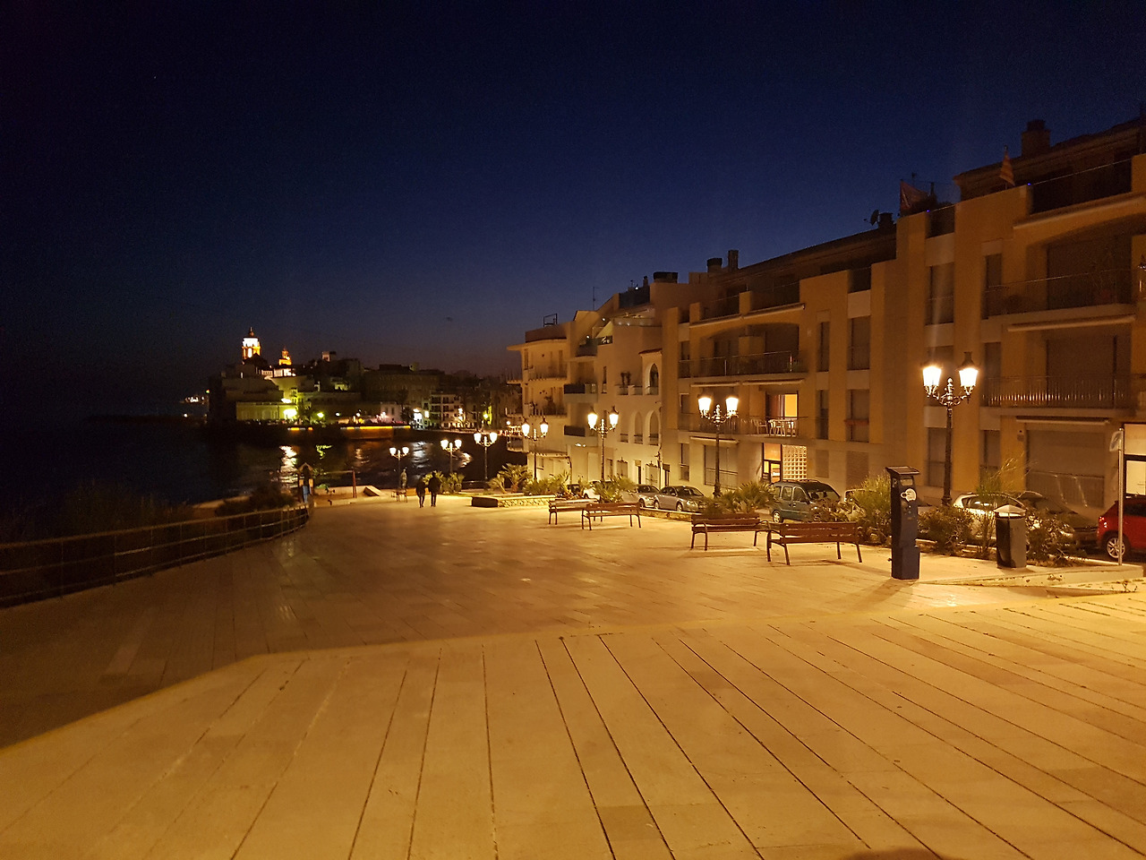 저녁을 먹고 나오니 시체스에도 어둠이 짙어져 있습니다. 한적했던 낮이었는데 밤이 되니 더 고요해졌습니다.