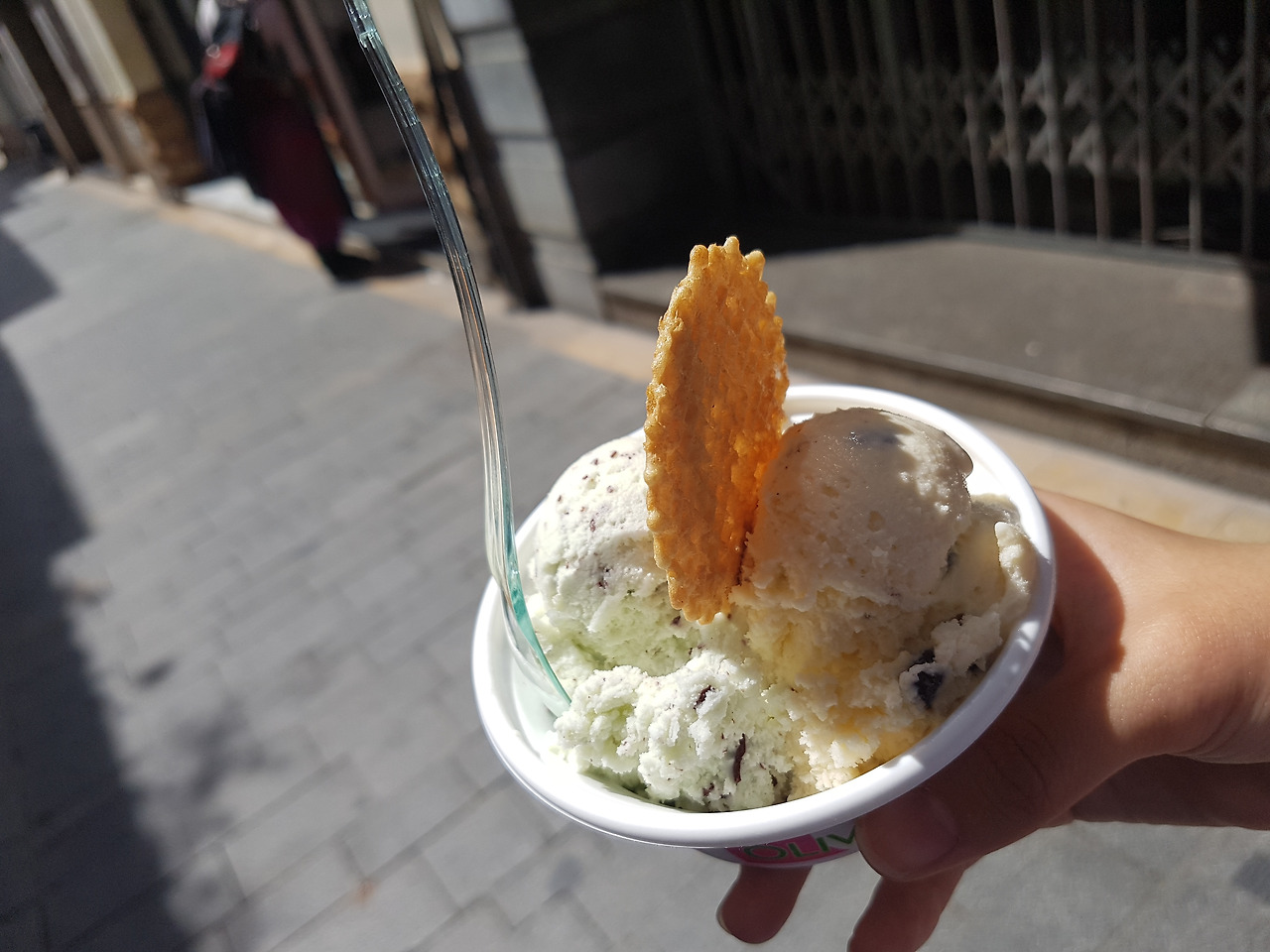 무더운 날씨에 어울리도록 아이스크림을 사서 걷기 시작합니다. 뜨거운 햇살 아래라도 달콤한 아이스크림과 함께하니 발걸음은 다시 가벼워집니다.