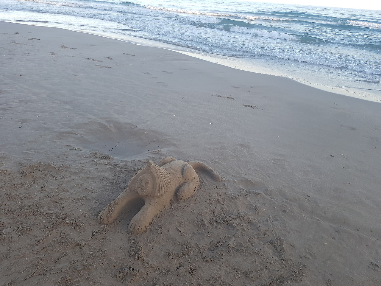 스핑크스를 만들어 놓았는데, 생각보다 잘 만들었습니다. 바닷가 모래로 이집트 건축물을 소환해 낸 손재주가 범상치 않게 느껴집니다. 여기 해변가엔 재주꾼들이 종종 다녀가나 봅니다.