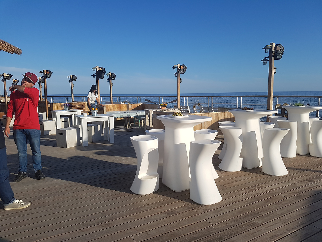 해변가의 식당은 브레이크 타임이라 아직 식사하는 사람은 보이지 않았습니다.