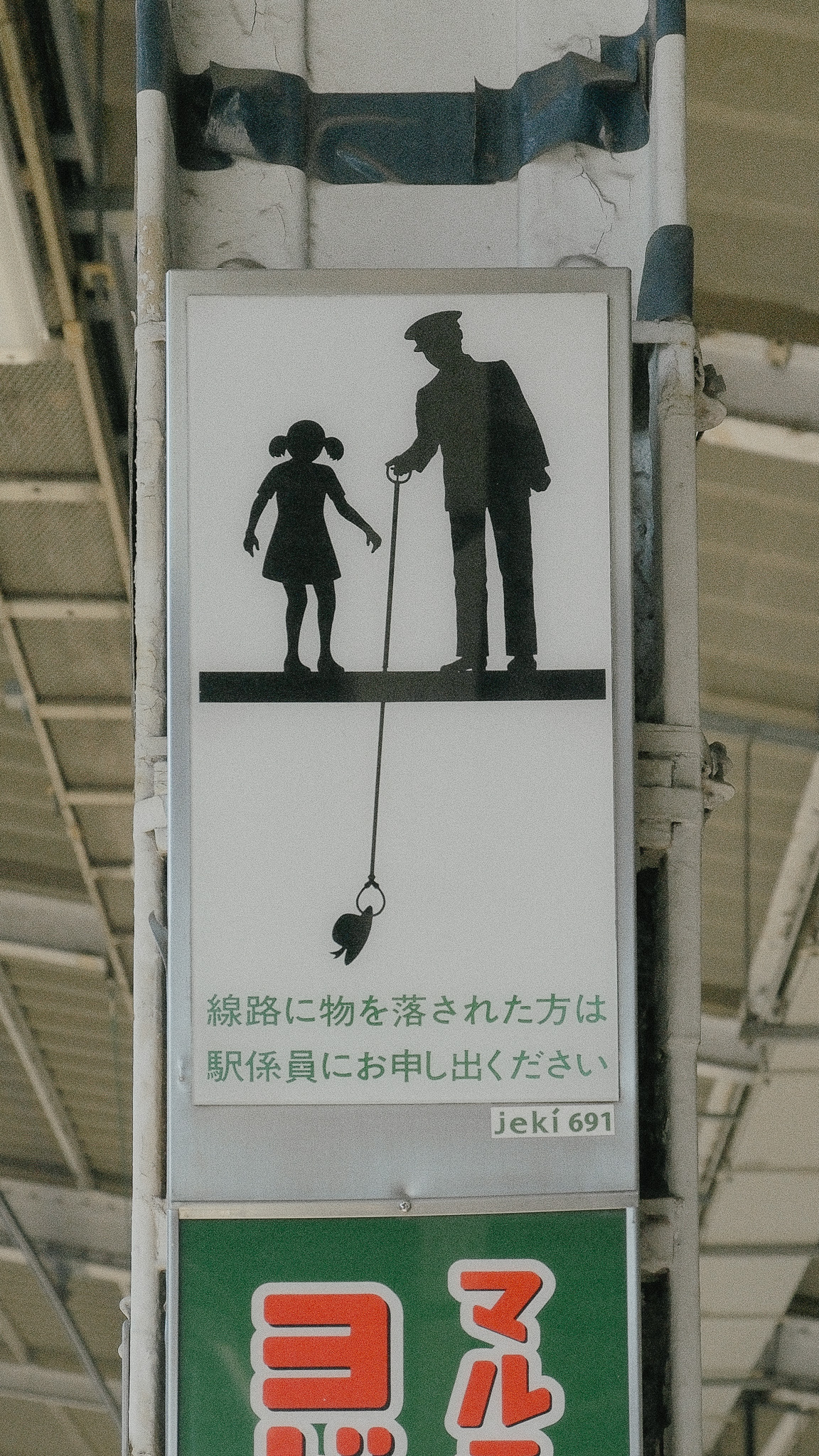 일본의 픽토그램에는 늘 모자가 등장합니다. 열차 선로에 물건이 떨어졌을 땐 역무원에게 문의해 달라는 이야기.