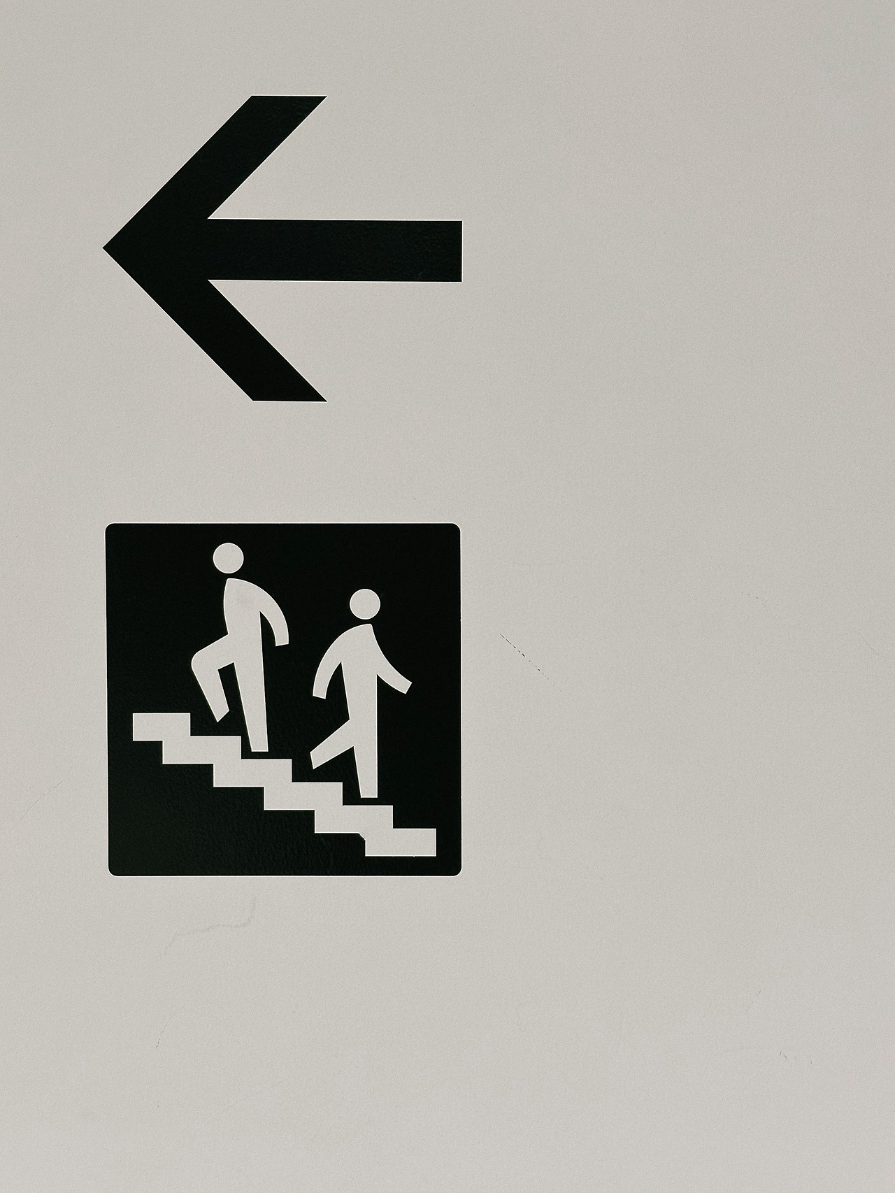 계단을 오르고 내려가는 두 가지 모두 표현한 공항 픽토그램