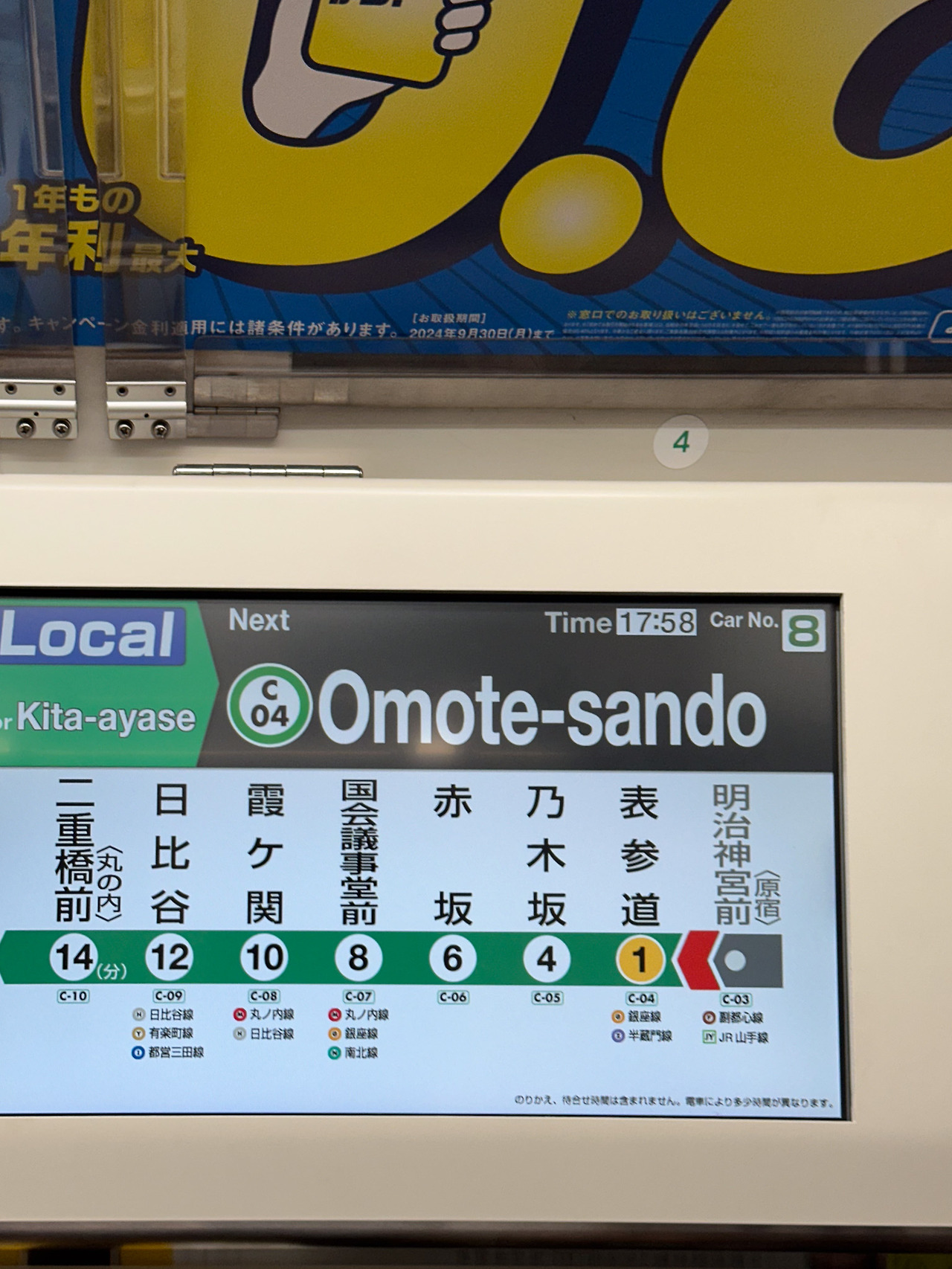 세 번째로 방문하는 도쿄의 지하철은 여전히 저에게는 어려웠습니다.