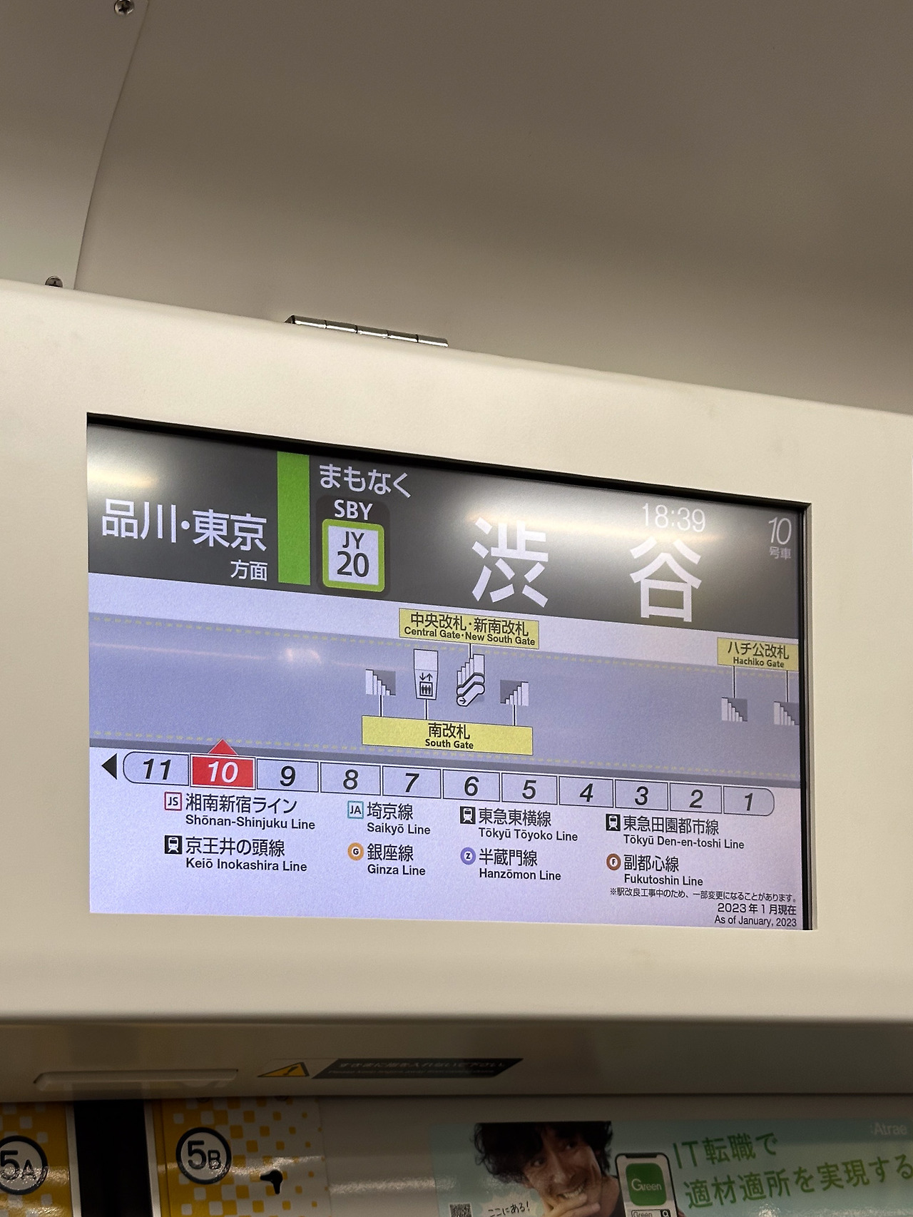 급하게 찍느라 잘찍진 못했지만, 복잡한 야마노테센의 지하철의 환승 및 역 정보인데요.