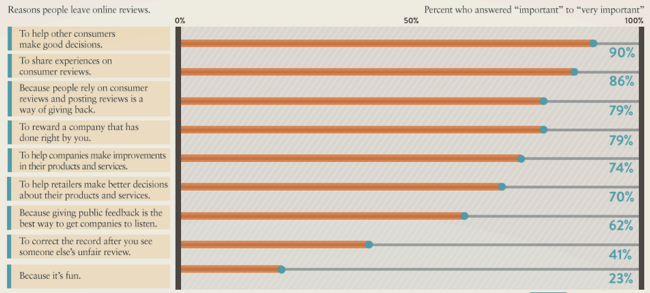 아래의 그래프는 왜 사람들이 온라인 리뷰를 남기는지에 대해서 조사한 내용인데요.
