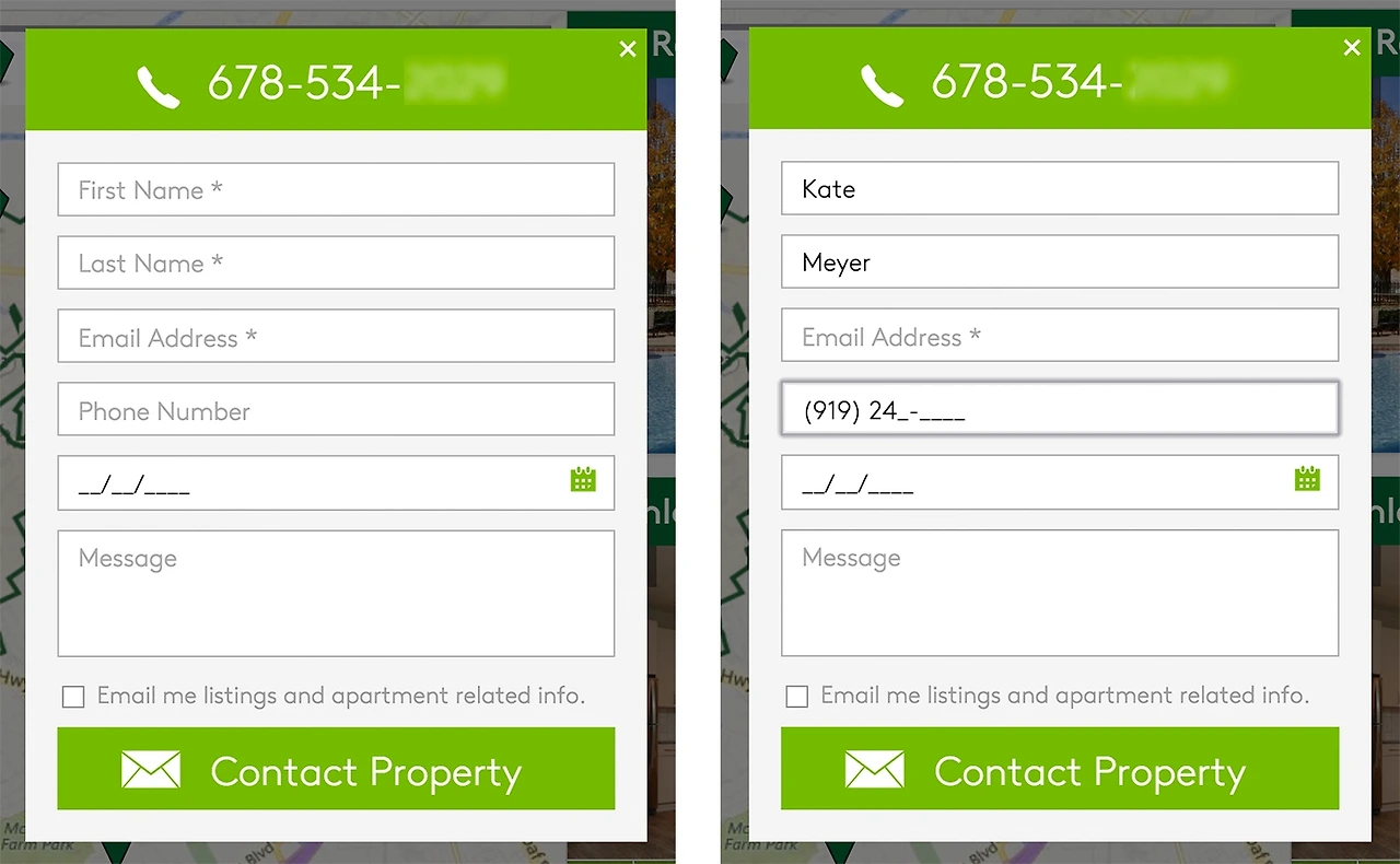 아파트먼츠 웹사이트의 경우 문의를 위해 핸드폰 번호를 입력할 경우 자동으로 문자열이 청크됩니다.