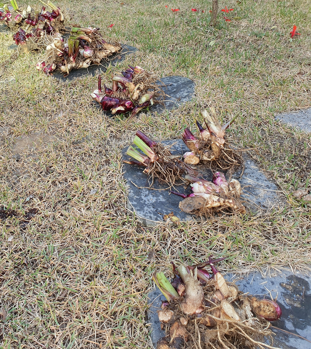 새끼 고양이 4마리와 어미고양이가 농사창고 뒤편에서 놀고 있다. 내가 농사창고로 갈 때마다 어미 고양이는 자세를 고쳐 앉고 나를 노려보며 그르렁거린다. 나는 어미고양이의 공격을 받지 않기 위해 최대한 눈을 안 마주치며 최대한 빠르게 귀여운 고양이들을 훔쳐본다. 4마리인데 두 마리는 검정 두 마리는 노랑이다. 손바닥만 하게 작은데 털이 보송하고 잘 뛰어논다. 어미 고양이의 뜨거운 눈빛을 애써 피하며 톱을 꺼냈다. 톱으로 칸나를 정리하려고 한다. 칸나를 10개 정도 심은 것 같은데, 10개가 각 10배씩 불어 100개가 된 것 같다. 아직 싱싱한 칸나 줄기를 끊어내자 물이 쏟아져 나왔다. 구근을 캐는데 너무 커서 계속 쪼개서 겨우 빼냈다. 수없이 버리면서 캐냈지만 아직도 양이 많다. 나 또한 이렇게 불어난 칸나를 택배로 나눔 받았다. 얼마나 잘 퍼지는지 2년 만에 나눔 보낸 이의 마음을 알아 버렸다.