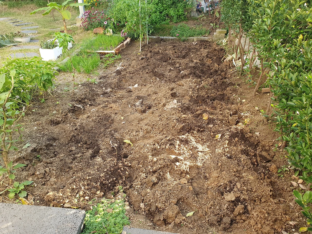 월동채소를 심었다. 이건 간단하지 않고 3주에 걸친 프로젝트였다. 제목은 내년에는 양파 안 사 먹기 프로젝트이다. 먼저 5월에 심었던 작물들과 헤어져야 했다. 죽은 옥수수와 오이를 걷어내고, 아직 열매가 달려서 아쉽지만 가지와 고추도 뽑았다. 식물이 잘 크는 땅을 만들어 주기 위해 석회와 땅벌레 제거 농약을 뿌리고 퇴비를 4 포대 넣고 섞어줬다. 일주일 뒤 고랑을 만들었다. 한 줄은 얇게 한 줄은 넓게 만들었다.