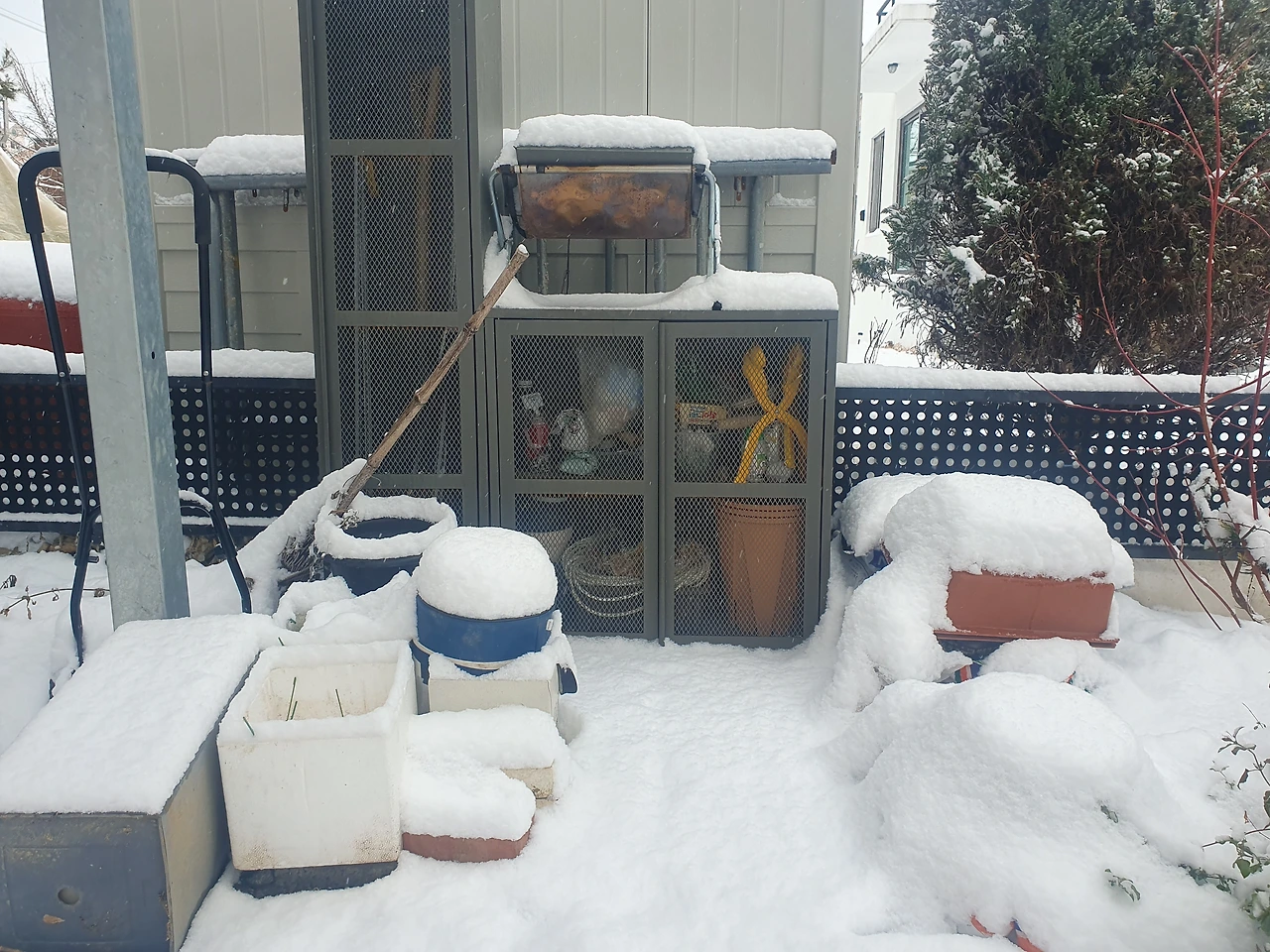 자꾸 눈이 폭탄처럼 왔다. 발목 위로 오는 눈이 벌써 두 번째다. 내가 사는 전주에는 흔치 않은 일이다. 오랜만에 정원에 나갔다. 지난 구정에 피웠던 화로대를 치웠다. 화려했던 불꽃은 검은 숯이 되어 조용히 남았다. 소복이 쌓인 눈 속에 잔디도 텃밭도 모두 두꺼운 눈이불을 덥고 있다. 또 한 번 잠들 시간이 왔다. 다시 한번 겨울잠들지 않은 동물들만 나와 캠핑을 해야 할 것 같다.