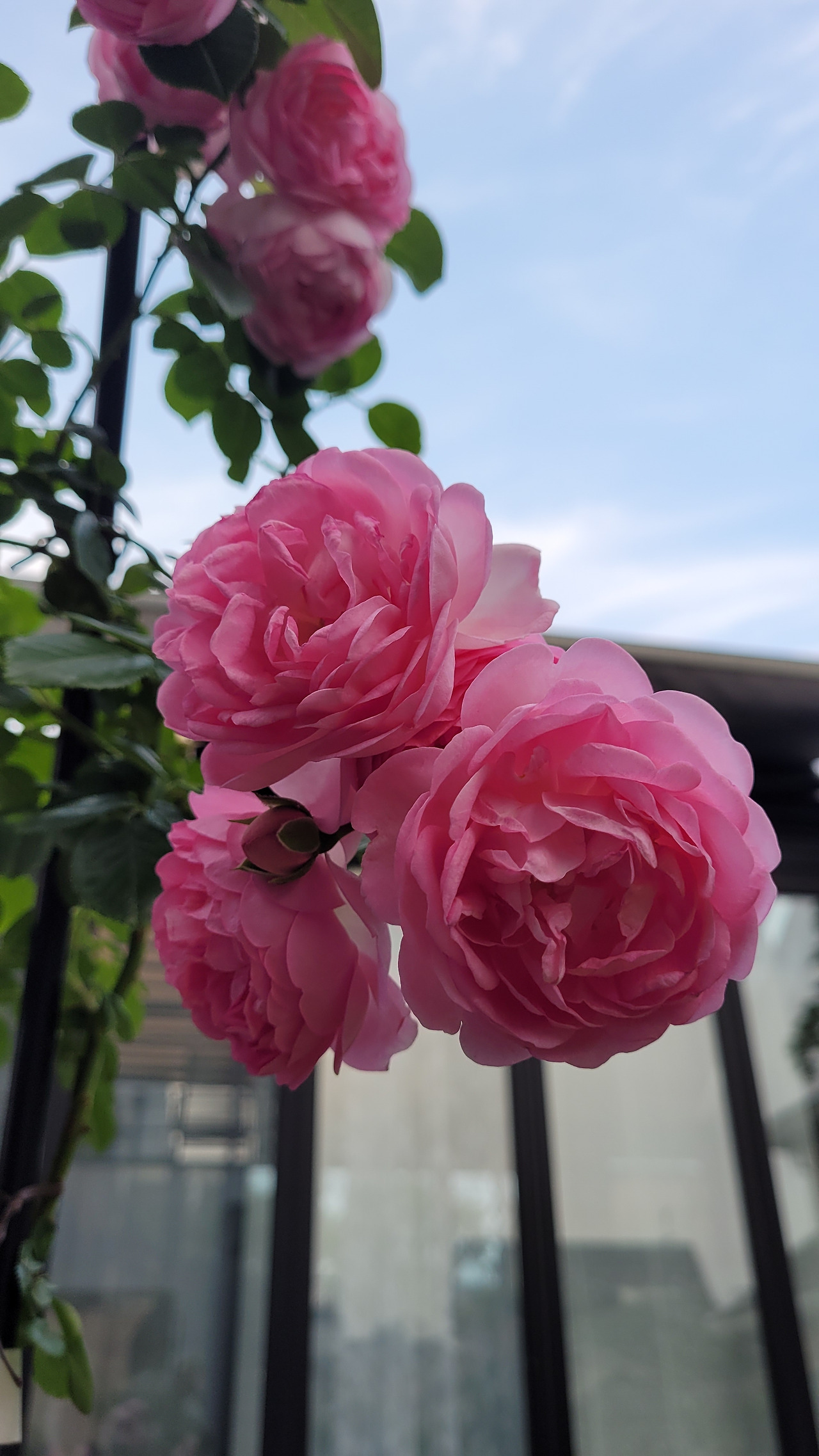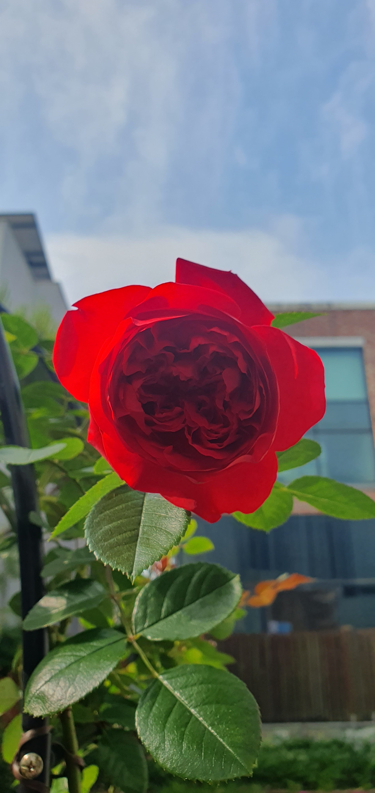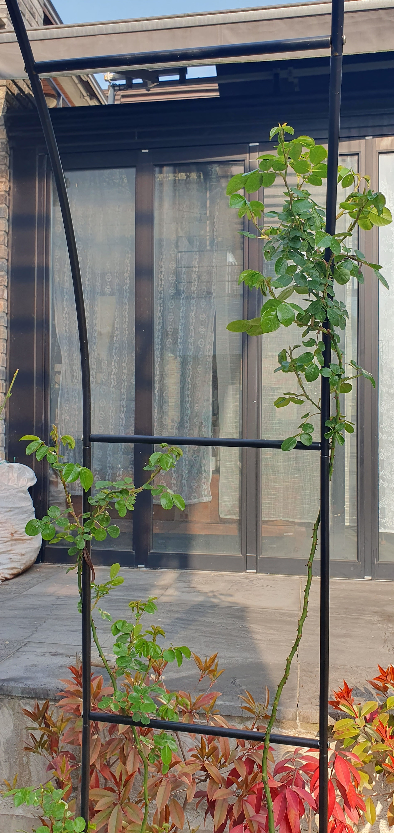 5월보다 조금 늦게 붉은 장미도 꽃을 피워내기 시작했다. 줄기부터 검은색이 돌더니 붉은 꽃이 폈다. 꽃이 매우 크고 색이 또렷한 빨강이었다. 처음 약했던 모습은 온 데 간데없고 옮긴 후로는 수세가 정말 강하다. 굵은 줄기가 쭉 뻗어 나왔다. 계속 줄기를 아치에 묶어줘야 했다. 화분에 심었는데 화분 밑구멍으로 땅바닥으로 깊게 뿌리를 내렸다. 강한 빛을 온몸으로 빨아들이고 기다렸다는 듯이 무서운 성장을 보여줬다. 병충해도 없고 꽃도 계속 피우는 정말 강한 장미였다.