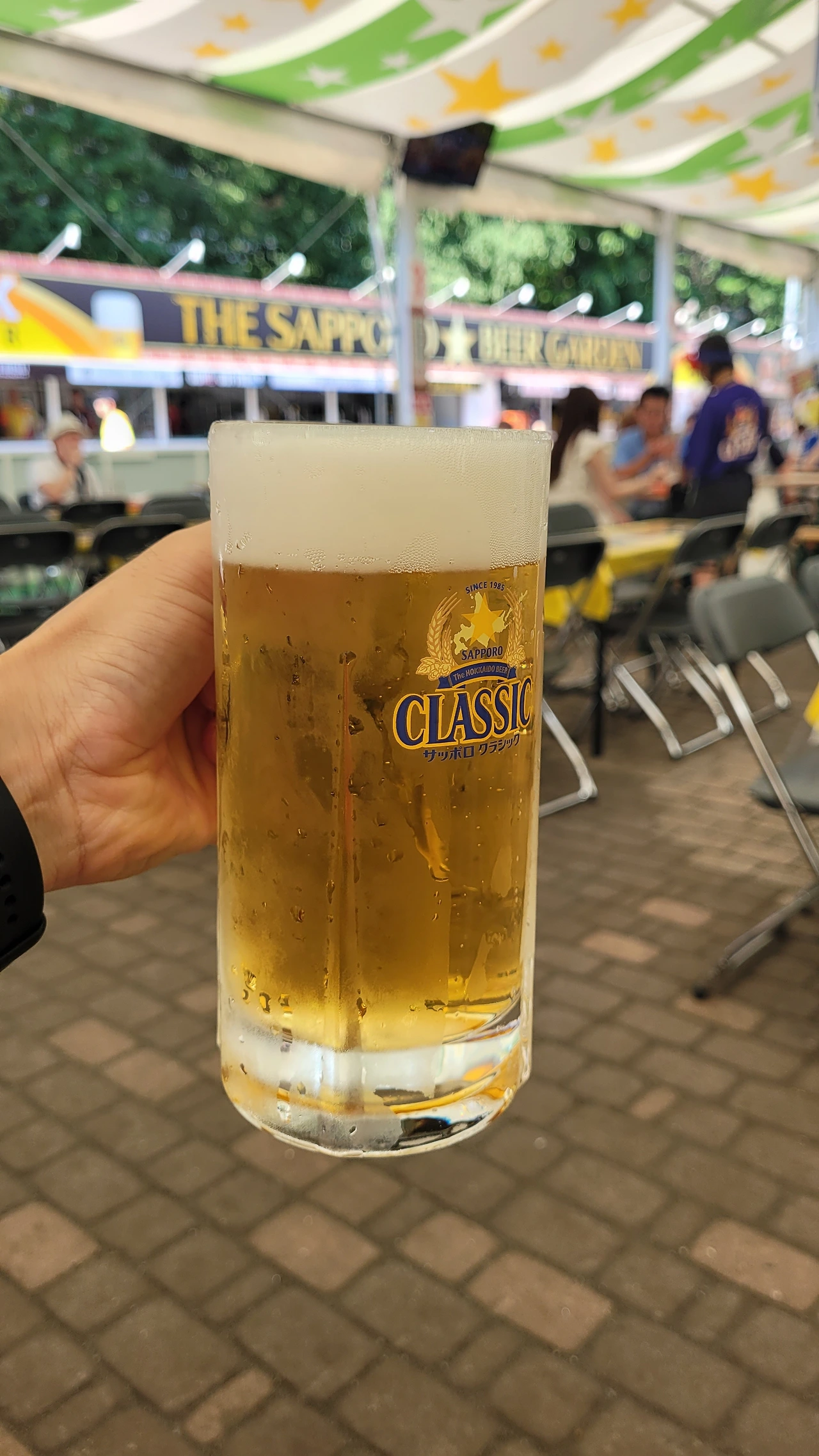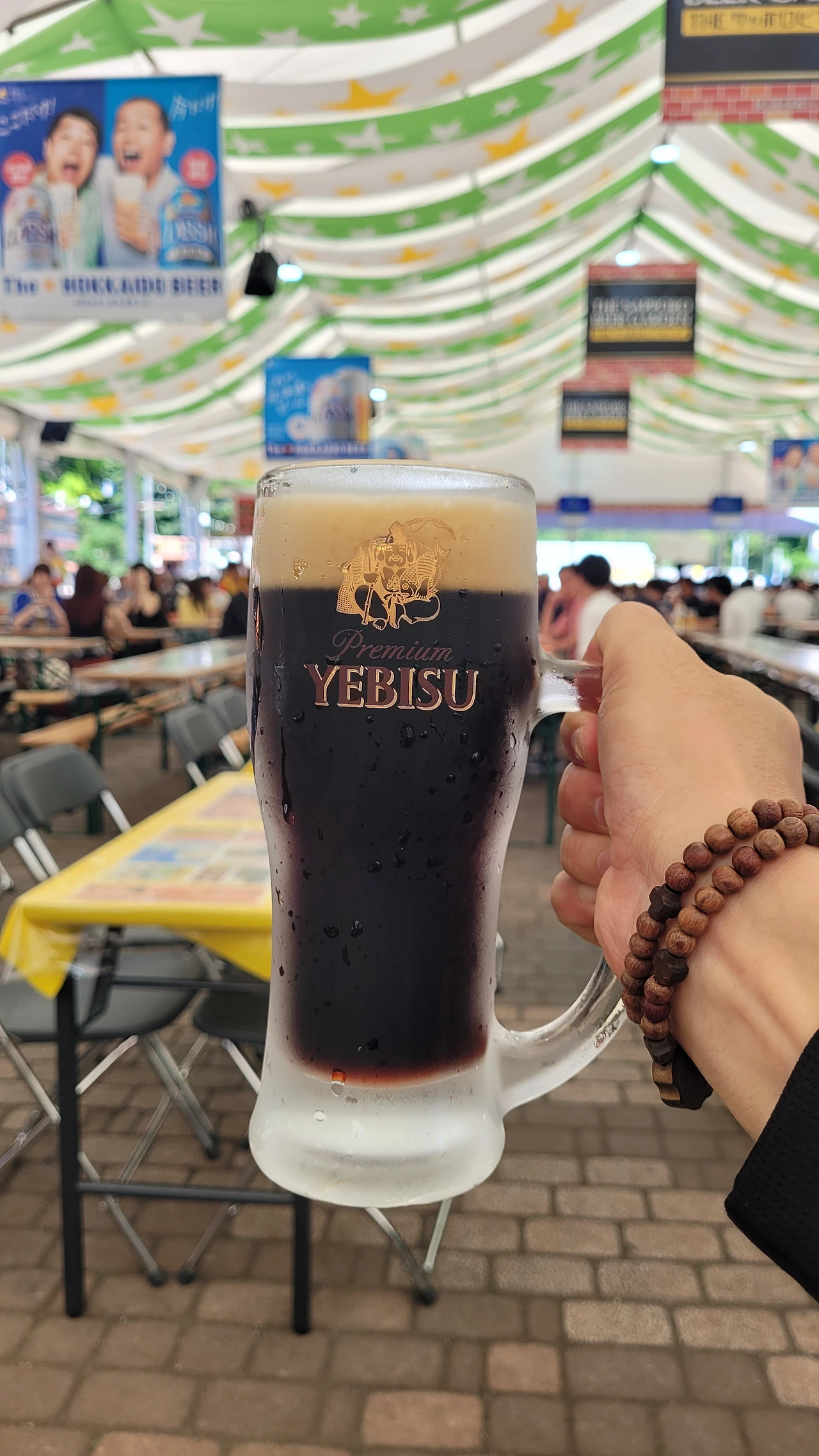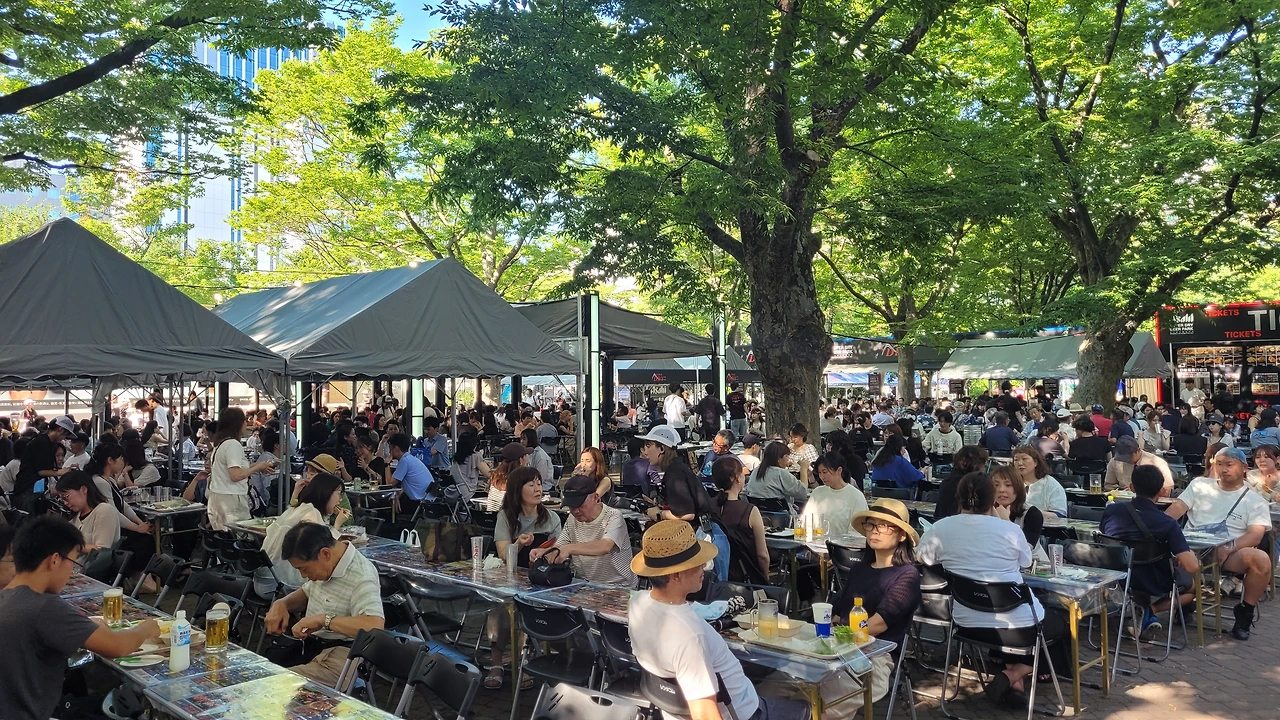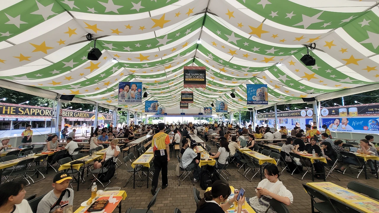 몇 블록 내려가서 맥주 축제 현장에 갔다. 다양한 맥주 브랜드들이 커다란 천막을 치고 끝도 없이 늘어서 있었다. 맥주를 좋아하는 나를 위해 한 테이블을 잡아 보기로 했다. 맥주브랜드가 세 종류였는데, 홋카이도에 왔으니 삿포로 부스로 갔다. 제일 큰 엄청난 대형 천막 부스 안에 사람들이 자리를 잡고 떠들면서 맥주를 마시고 있었다. 첫 잔으로 흑맥주와 꼬치구이를 시켰다. 맛이 깔끔하고 시원했다. 두 번째는 라거맥주를 시켰는데 이것 또한 깔끔하고 진했다. 대낮에 공원에서 이렇게 노상 맥주를 마시는 게 참 신선한 경험이었다.