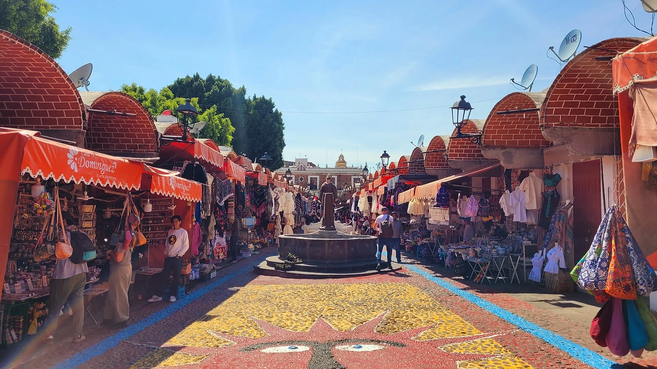 이제 푸에블라의 구도심을 걸으며 아기자기한 거리를 구경했다. 먼저 과자거리가 있었다. 아들이 큰 기대를 했는데, 생각보다 규모는 크지 않았다. 그다음으로 개구리의 거리라는 수공예품거리를 지났다. 옷이나 잡화를 팔고 있었고, 나무 그늘 아래 플리마켓 잡화상도 구경하기 좋았다. 거리를 걸을수록 거리에 사람들도 적당하고 한가로운 분위기가 풍겼다. 멕시코시티 센트로의 번잡함에 지쳐버린 나의 마음이 걷다 보니 풀어졌다. 멕시코가 다 같지는 않구나 싶었다. 게다가 건물이 낮고 유럽풍 건물이 많아서 자꾸만 유럽에 온 것 같은 착각이 들었다. "여기가 멕시코라는 걸 자꾸 잊게 된다"라고 하니 남편이 자기도 그렇다고 맞장구를 쳤다. 예전 포르투갈 여행 때 보았던 아술레호스(azulejos) 타일 벽으로 장식된 저택들이 있었다. 유럽 양식과 아메리카 양식이 융합된 푸에블라 역사 지구만의 독특한 바로크 양식의 건물이 많았다. 푸에블라 역사지구는 유럽의 감성을 느끼며 산책을 하기 좋았다.