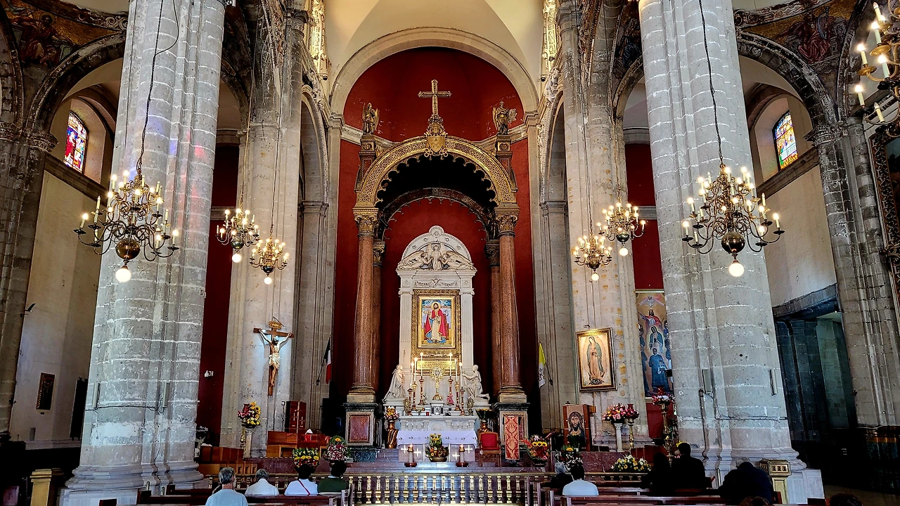 신대성당 바로 옆에는 구 대성당 (Templo Expiatorio a Cristo Rey)이 있다. 고풍스러운 바로크 양식 건물로, 1709년에 완공되었으나 지반 침하로 건물이 기울어져 한때 폐쇄되었다가 복원되었다. 현재는 성체 조배실로 사용되고 있었다. 겉으로 보기에도 많이 기울어진 모습인데, 안으로 들어가자 바로 어지러움이 느껴졌다. 하지만 내부의 장식이나 성화는 고풍스러움이 느껴졌다. 고요한 가운데 성체를 바라보며 기도하기 좋아보였다.