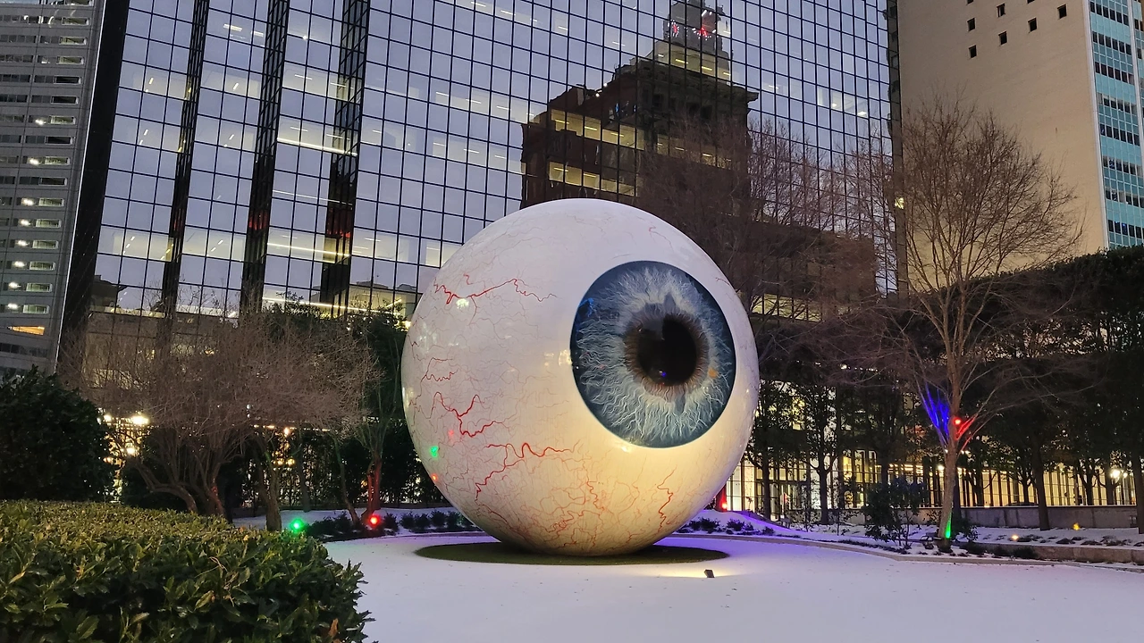 날씨를 다시 확인하니 어제처럼 매서웠다. 옷을 더 껴입고 다시 밖으로 나섰다. 전날 늦게 도착해 보지 못했던 장 아이볼을 찾았다. 높이 9.1m의 거대한 안구 조형물은 울타리 안 정원에 자리하고 있었는데, 실제 인간의 눈을 그대로 확대한 듯 사실적이었다. 눈 덮인 도심 한가운데에서 그 눈과 마주하니 묘한 기분이 들었다.