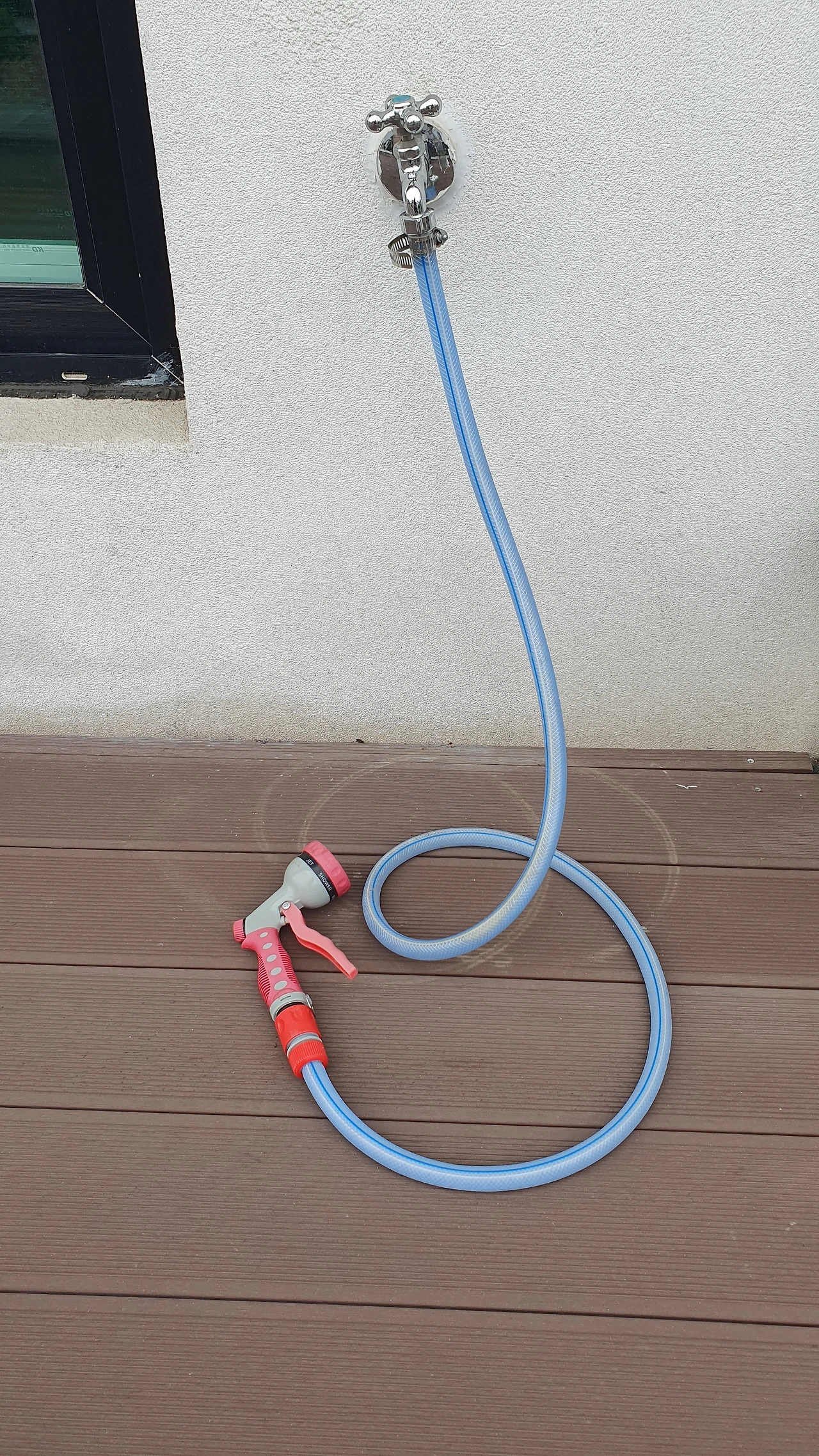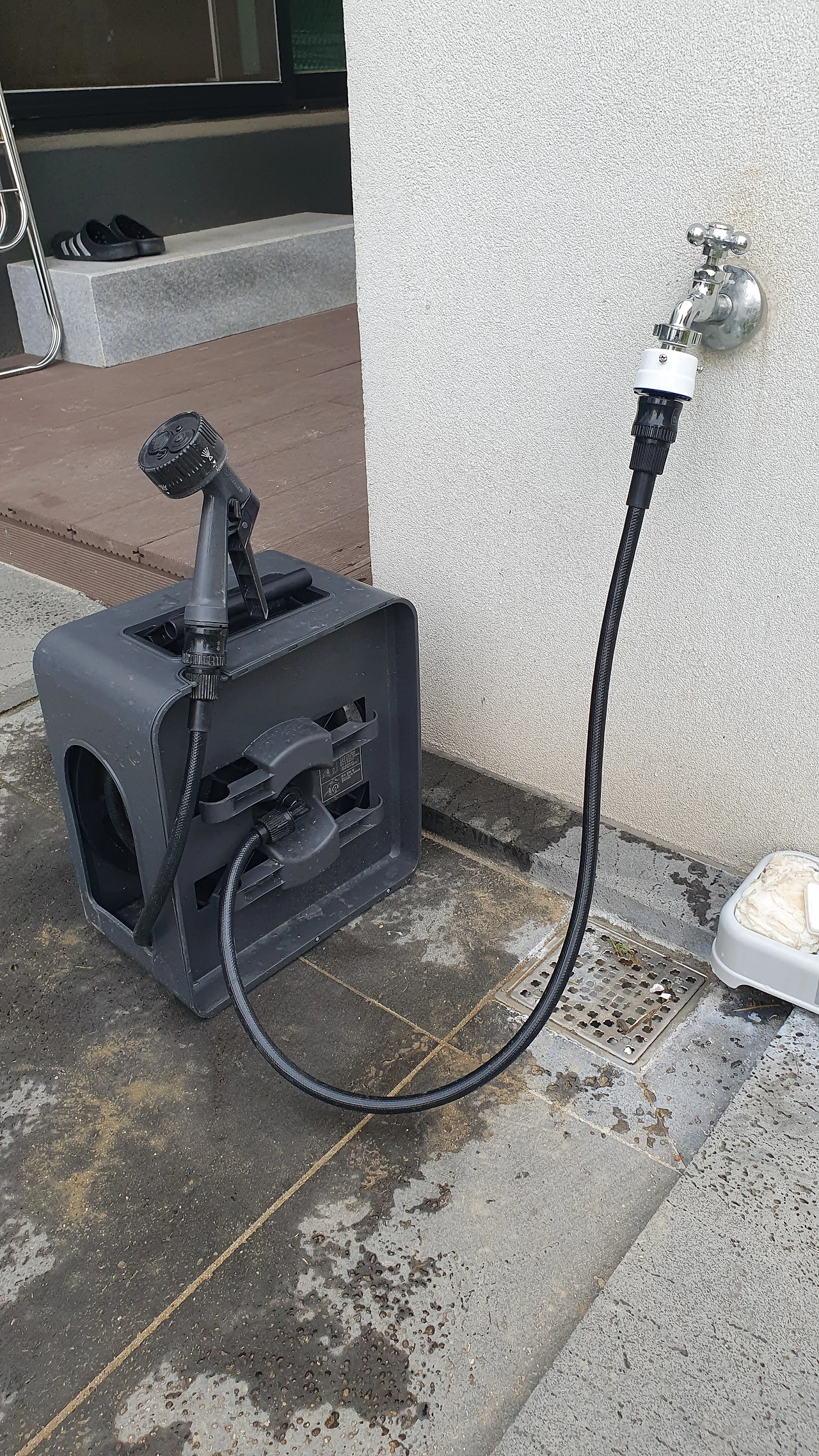 먼저 매일 물을 줬다. 날이 더워지고 식물들이 물 부족에 허덕이고 있었다. 내가 목 마르면 물 마시지만 식물 목마른 것은 비 오니까 괜찮다고 모른척하고 물은 가끔 생각날 때만 줬고, 물주는 시스템도 많이 허술했다. 정원 첫 해인 작년에는 호스가 1m도 안되어서 정원의 구석 구석 물을 뿌릴 수가 없었다. 집 건물 뒷 화단은 극도의 물도 없고 모래 흙의건조한 환경에 준공 때 심어놓은 회양목이 반 정도 죽었다. 물 주기는 몸이 힘들진 않지만 시간과 비례한 작업이다. 우리 집 정원은 30평 정도인데, 간단하게 뿌려도 최소 20분이고 충분히 하나하나 적시려면 1시간 동안 호스를 들고 서 있어야 할 수도 있다. 게다가 화분과 달리 노지는 땅이 평평해서 세게 쏘면 물이 그냥 낮은 곳으로 흘러 내려가버린다.